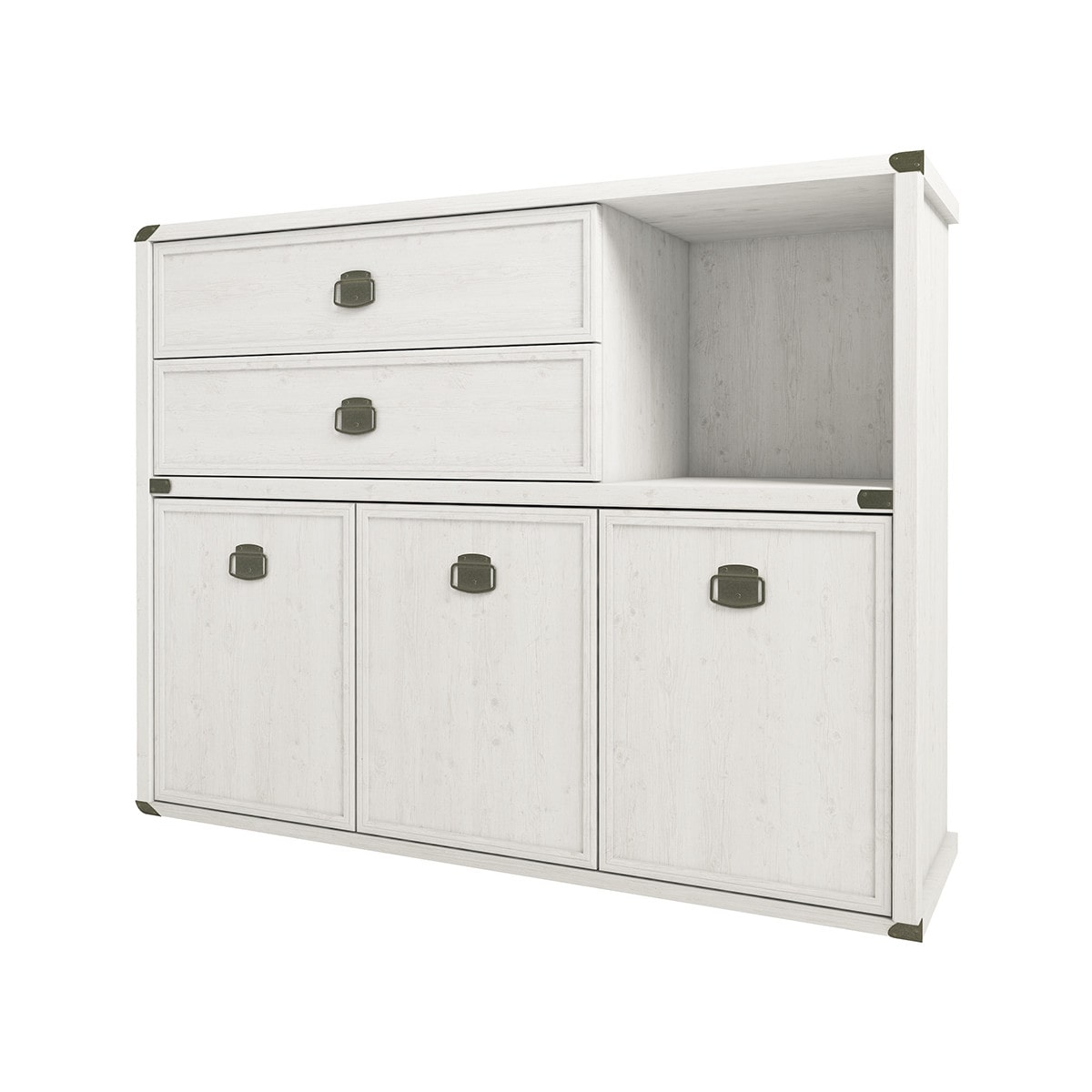 Тумба 3D2SN MAGELLAN – функциональное и удобное украшение интерьера гостиной, молодёжной комнаты, прихожей и спальни. Тумбу можно устанавливать и как самостоятельный предмет мебели, так и в сочетание с другими модулями коллекции Магеллан. Тумба 3D2SN имеет прямую конструкцию. Конструкция элемента представляет собой три отделения с полками из ЛДСП за глухими дверями (3D), два вместительных выдвижных ящика (2S), одна открытая ниша (N). Двери распашные, крепятся на петли к боковому корпусу и внутренней перегородке.