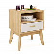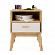 Эта тумба проста и элегантна, она отлично впишется в любой интерьер. Фасад из белоснежного МДФ в сочетании с корпусом из ЛДСП цвета натурального дуба создаёт ощущение лёгкости и нарядности. Ручку ящика выполнили из массива берёзы.