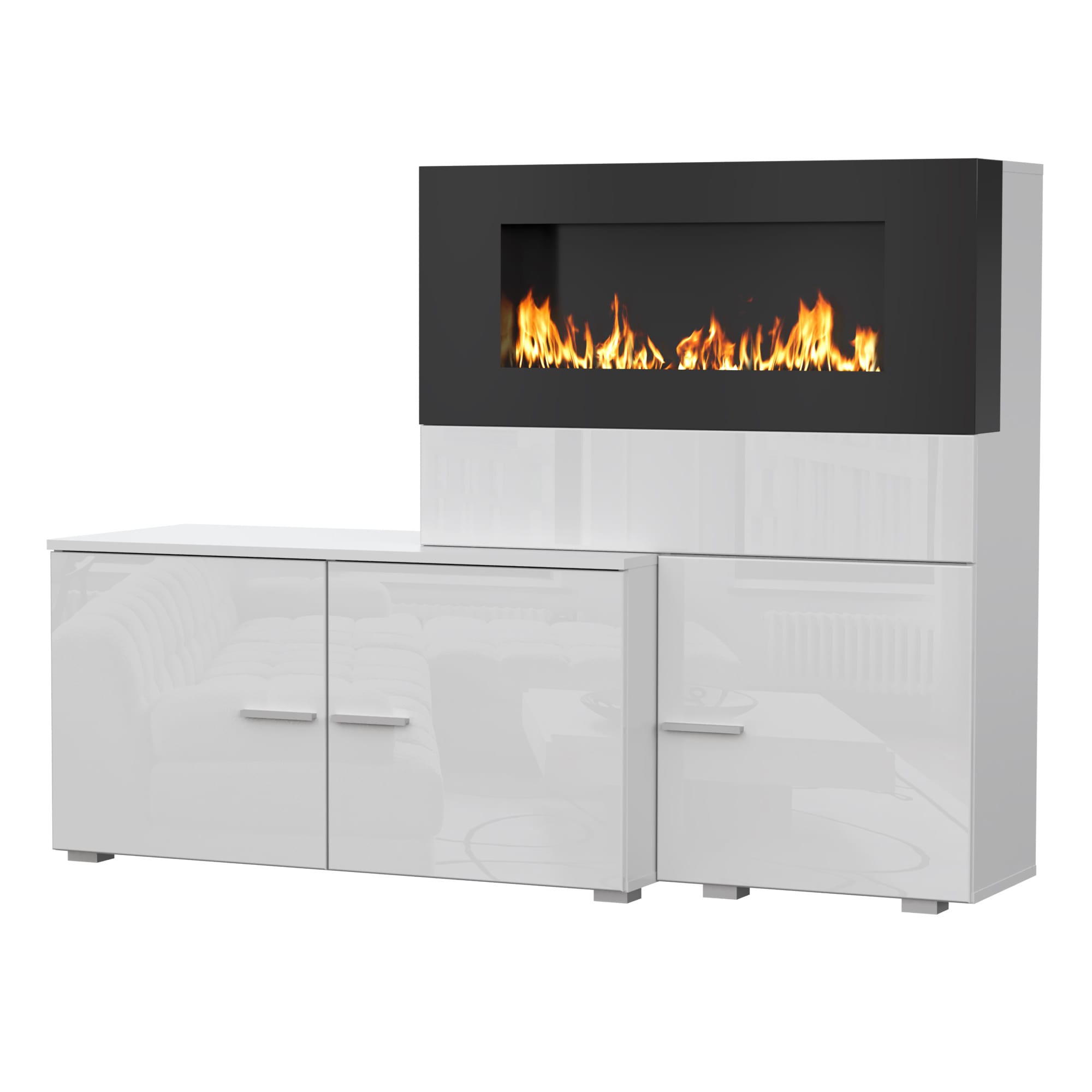 Тумба НК Ralf с биокамином Белый/Белый глянец