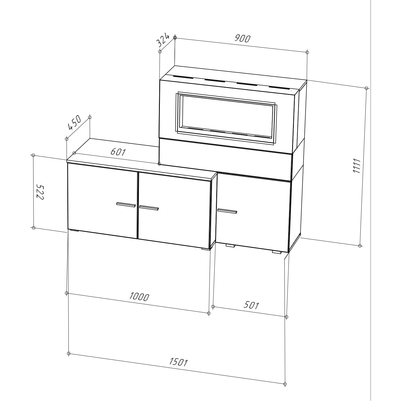 Тумба НК Ralf с биокамином Белый/Черный глянец