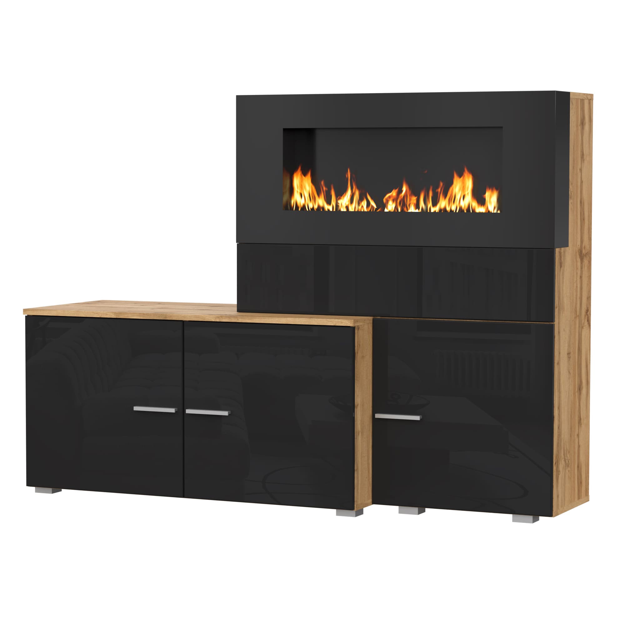 Тумба НК Ralf с биокамином Дуб вотан/Черный глянец