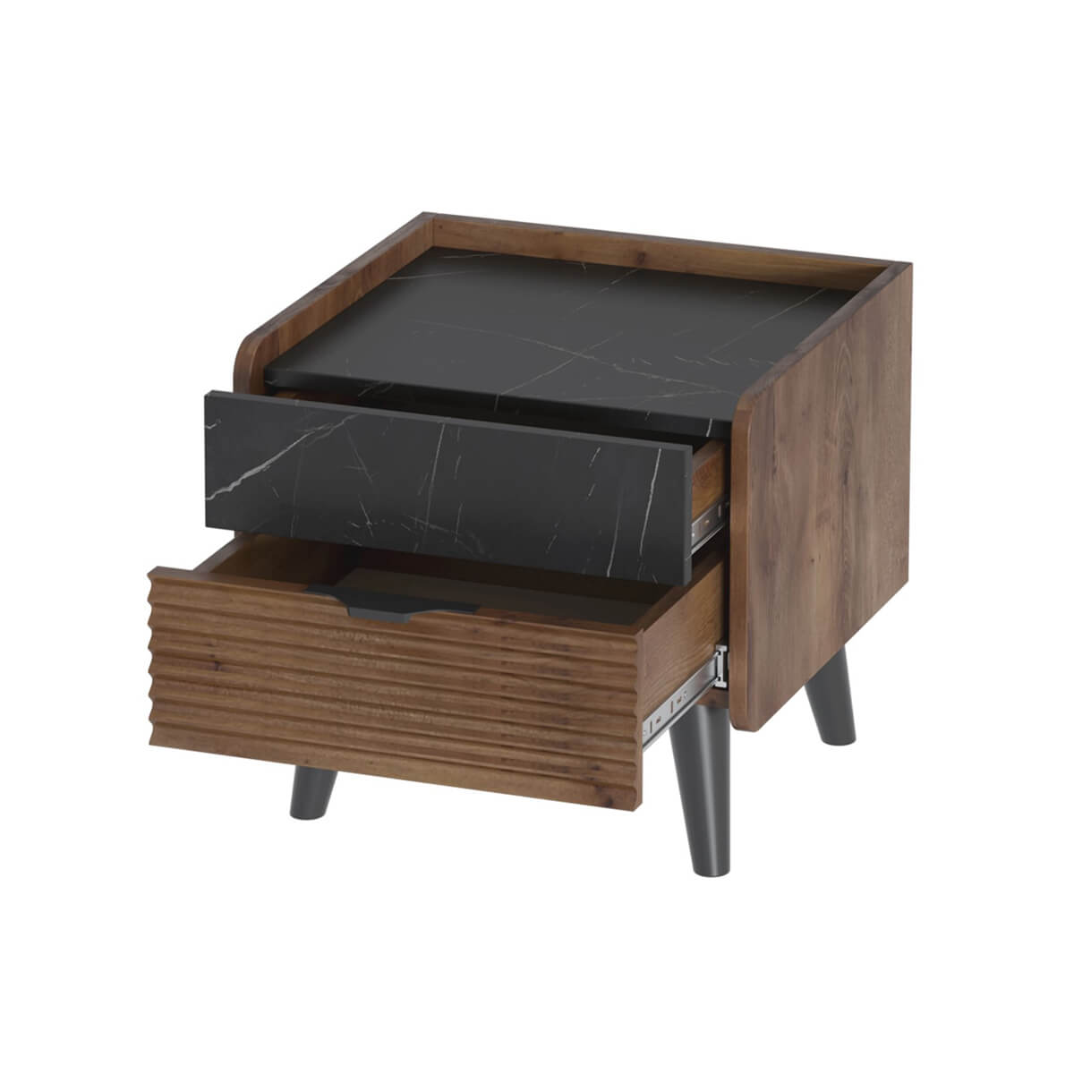 Прикроватная тумба "Браун" имеет выдвижной ящик, для хранения мелких предметов, таких как пульт от телевизора, наушники, зарядные устройства. Открытое отделение тумбы позволяет хранить книги, журналы и другие предметы на видном месте.