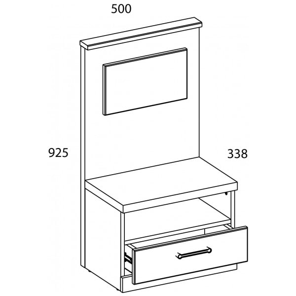Тумба прикроватная JAGGER 1S. Необычный дизайн прикроватной тумбы, которая имеет одинаковую высоту с изголовьем кровати, создаст стилистический сюжет и дополнит общую композицию интерьера спальни. Тумба прикроватная 1S имеет прямую конструкцию. Конструкция элемента представляет собой открытую нишу под верхним щитом, один выдвижной ящик (1S). На задней стенке изделия расположен декоративный элемент в виде прямоугольника (фальшпанель), за которым возможно установить подсветку.