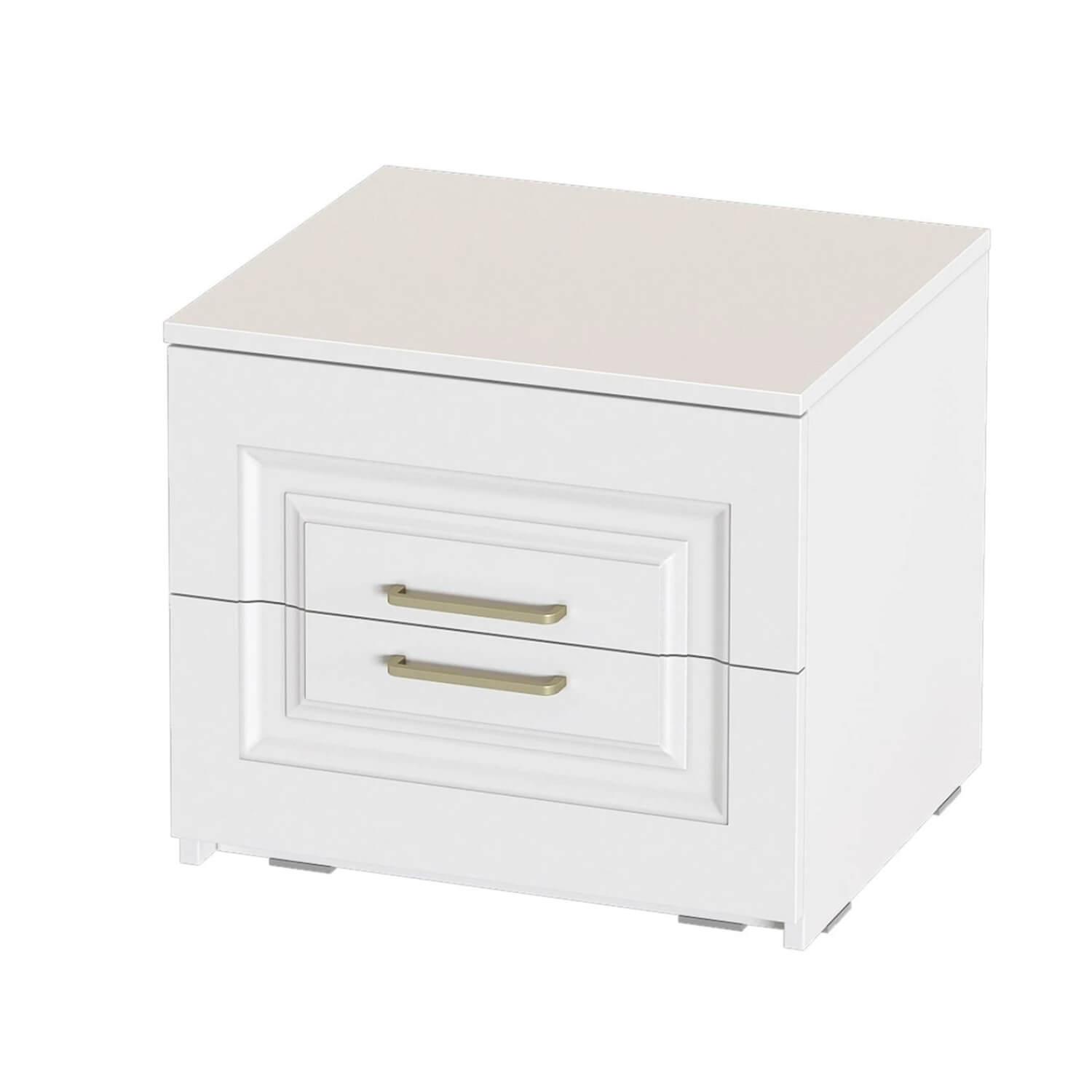 Тумба выполнена в цвете Айс 06 / Белый Аляска. Классическая фрезеровка фасадов и ручки-скобы из брашированного золота придают изделию особый шарм и элегантность. Тумба оснащена двумя ящиками полного выдвижения на шариковых направляющих, которые скользят бесшумно и плавно. Дно и задние стенки выполнены из ХДФ. На опорах размещены войлочные подпятники.