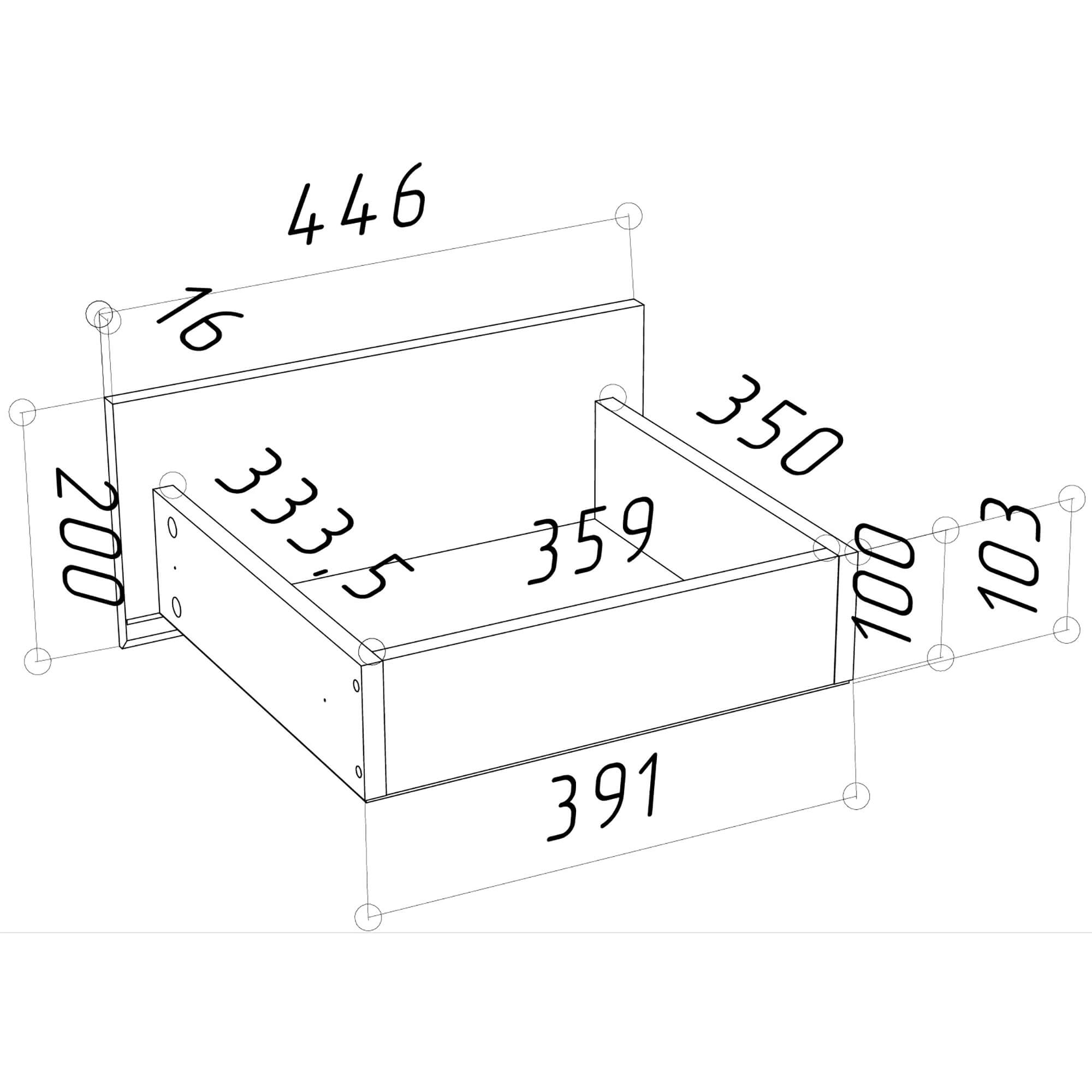 Корпус: ЛДСП 16 мм. Фасады: ЛДСП 16 мм. Тип направляющих: шариковые, без доводчика. Открывание: интегрированная в фасад ручка(без лицевой фурнитуры).