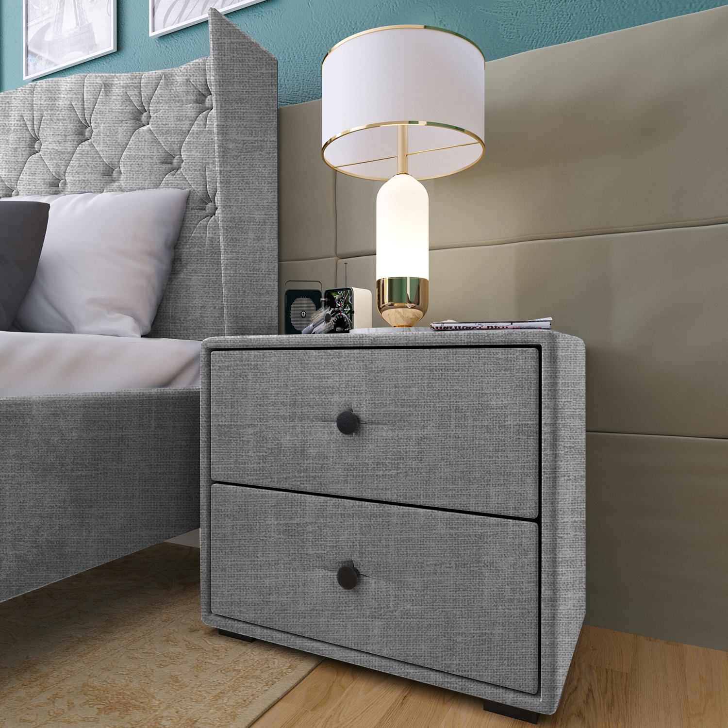 Каркас: ЛДСП/ДВП. Обивка(наполнение): поролон Обивка(ткань): Рогожка Серая