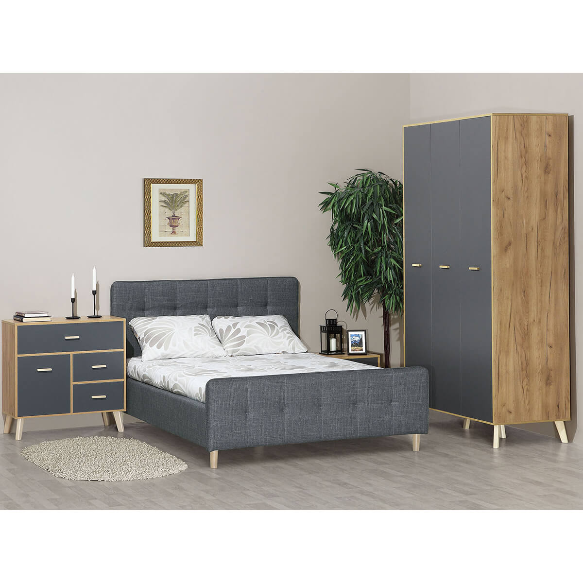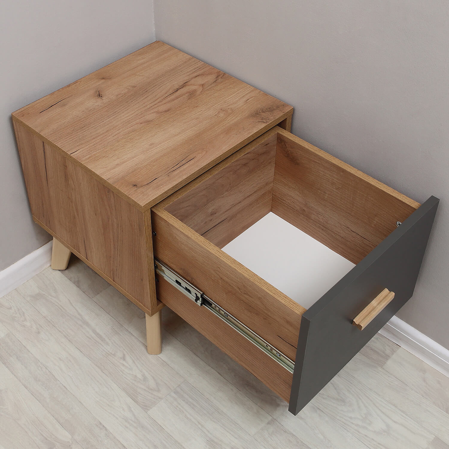 Тумба прикроватная Скандик Дуб Крафт золотой/Графит серый