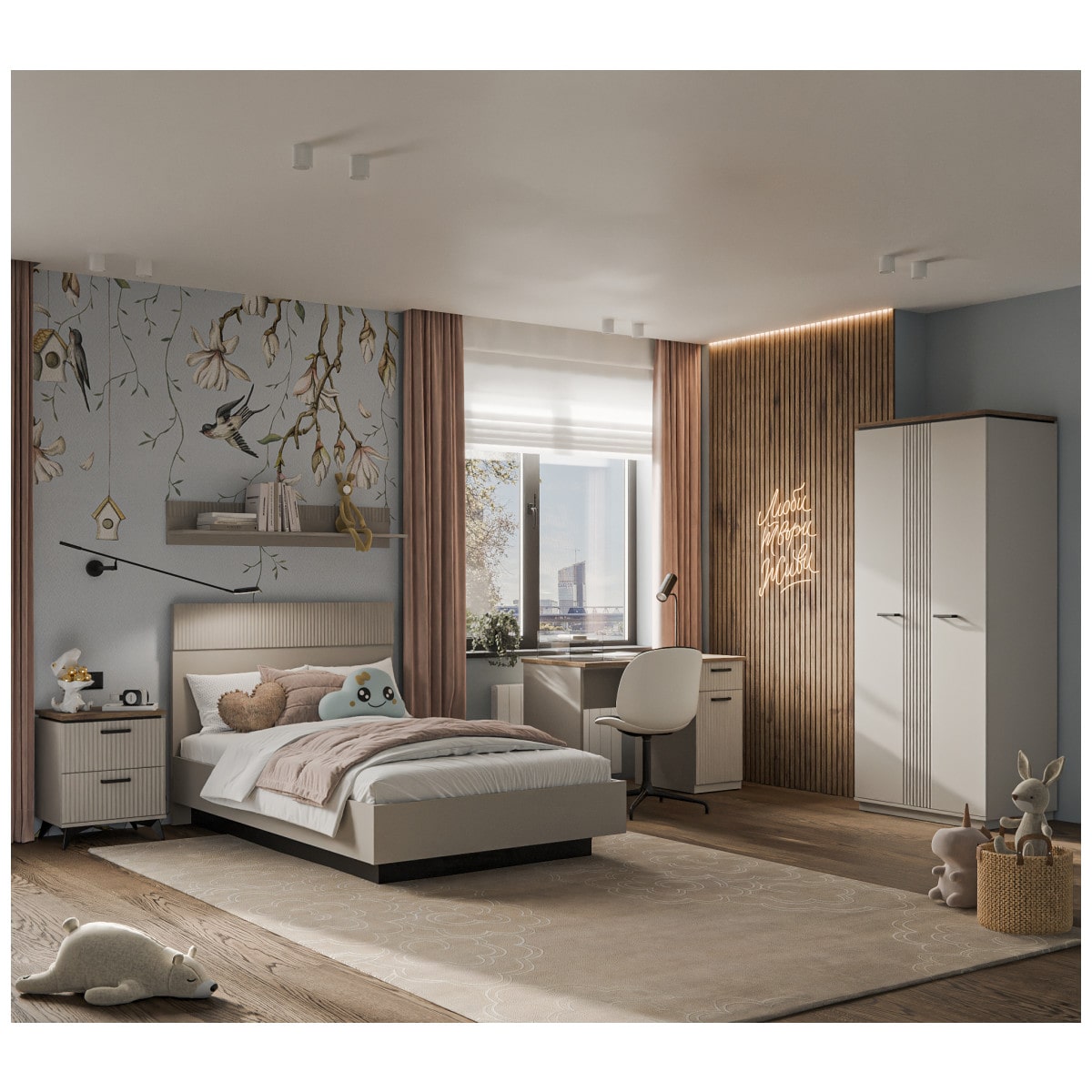 Декор в виде рифленой поверхности на фасаде подчеркивает особенность дизайна коллекции. Добавьте сюда подсветку, украсьте памятными сувенирами, семейными фотографиями и Ваш интерьер засияет поистине новыми красками.