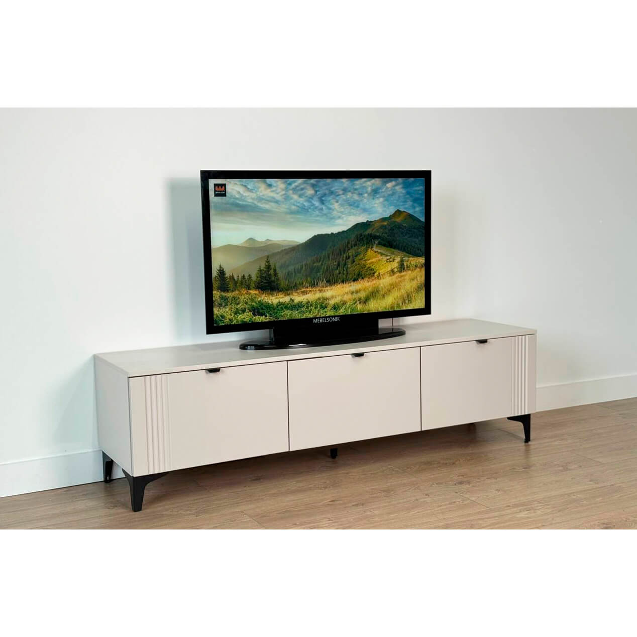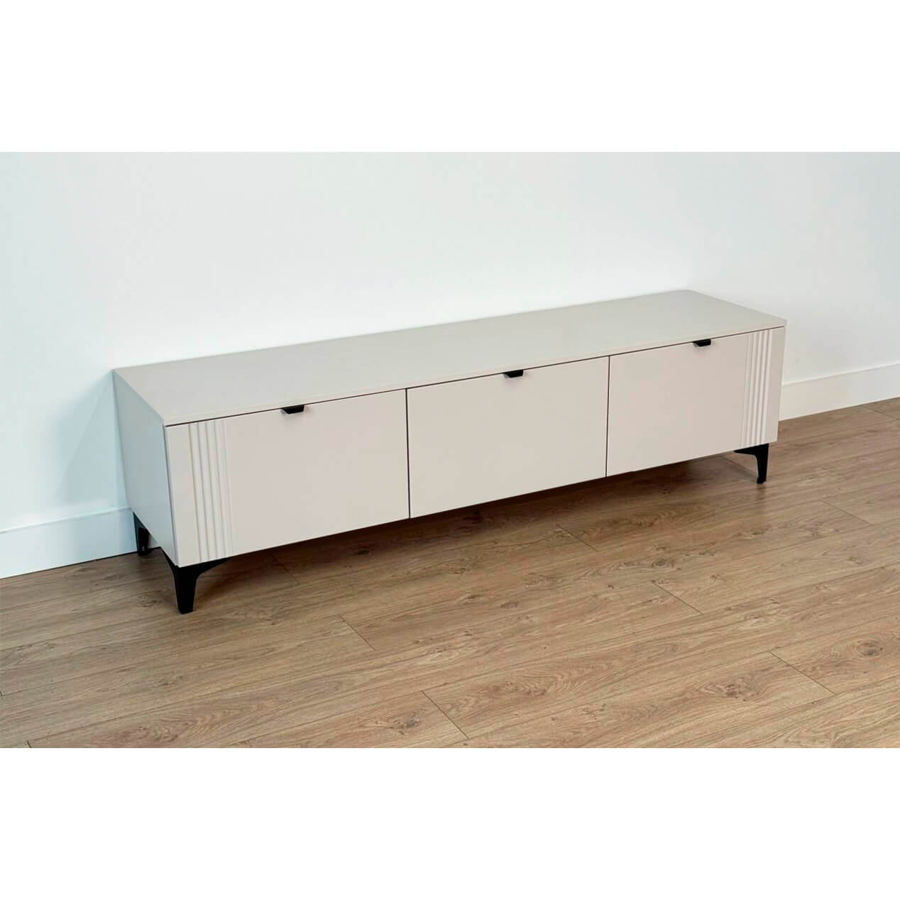 Тумба оснащена тремя распашными дверцами, которые открывают доступ к просторным внутренним полкам, идеально подходящим для хранения посуды, бытовой техники, аксессуаров или других предметов. Металлические ручки придают изделию современный вид и удобство в использовании.