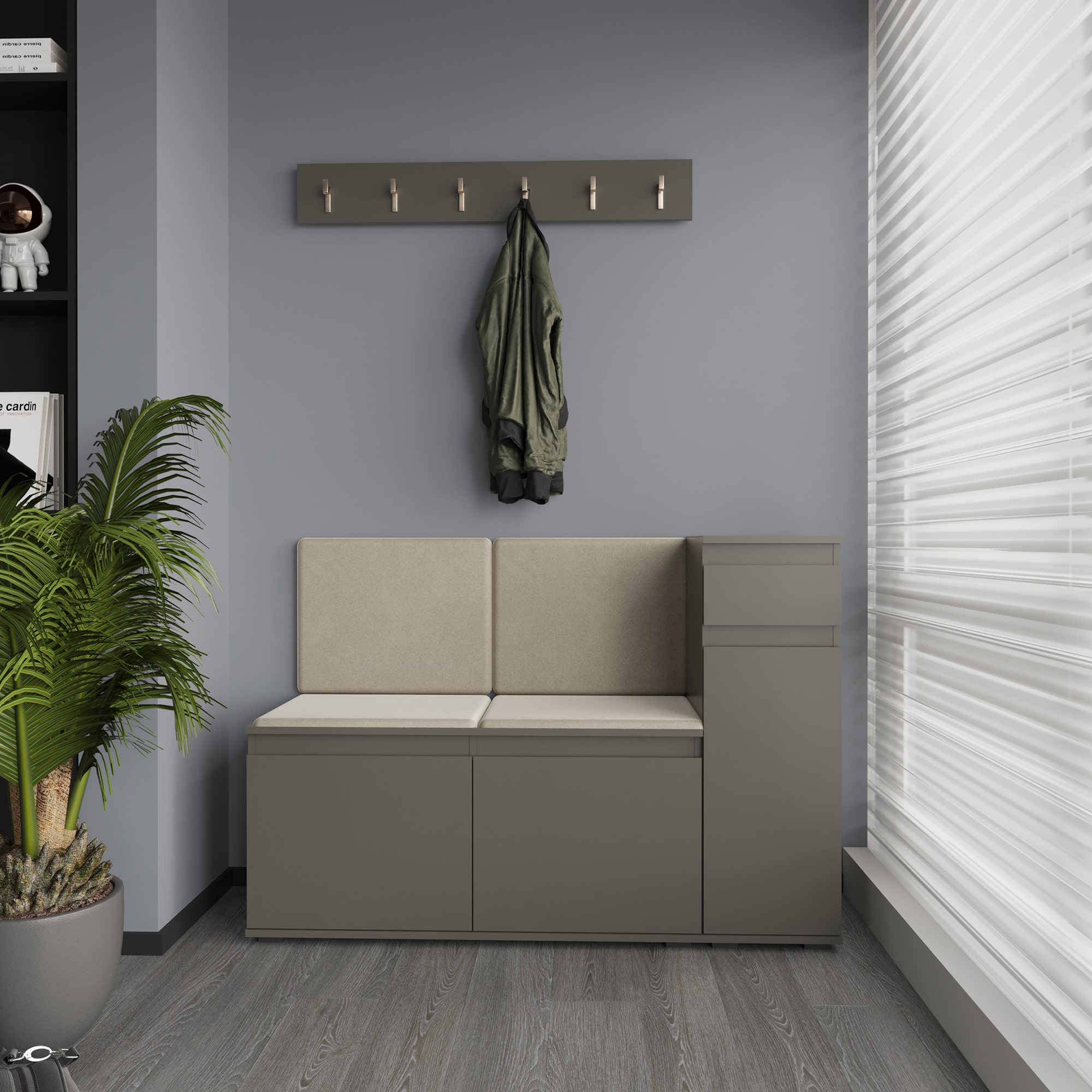 STARK — модульная прихожая, которая прекрасно подойдет для современного интерьера, позволит организовать много зон для хранения одежды в прихожей.