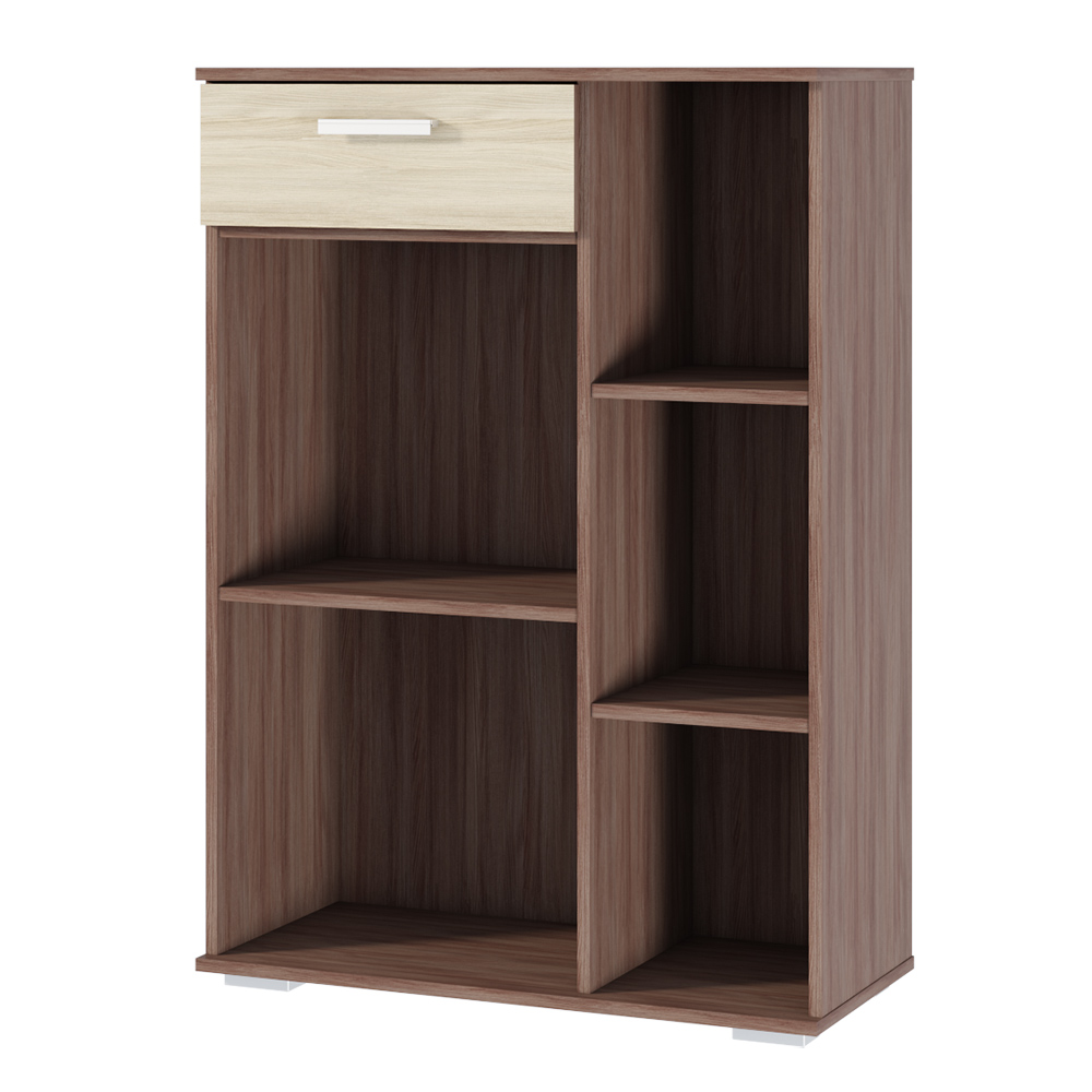 Широкая и вместительная Прихожая Ника 0,8 Венге-Лоредо позволит разместить в себе обувь всех членов семьи, а выдвижной ящик может служить местом для хранения аксессуаров, перчаток и шарфов. Дверки у остальных ящиков распашные.