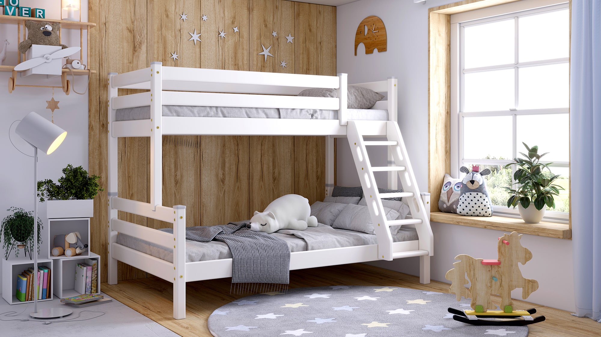 Продуманная конструкция и качественные материалы делают двухъярусную кровать Адель отличным выбором для двух детей, живущих в одной комнате. Модель оснащена бортиком безопасности и наклонной лестницей для легкого доступа к верхнему уровню.