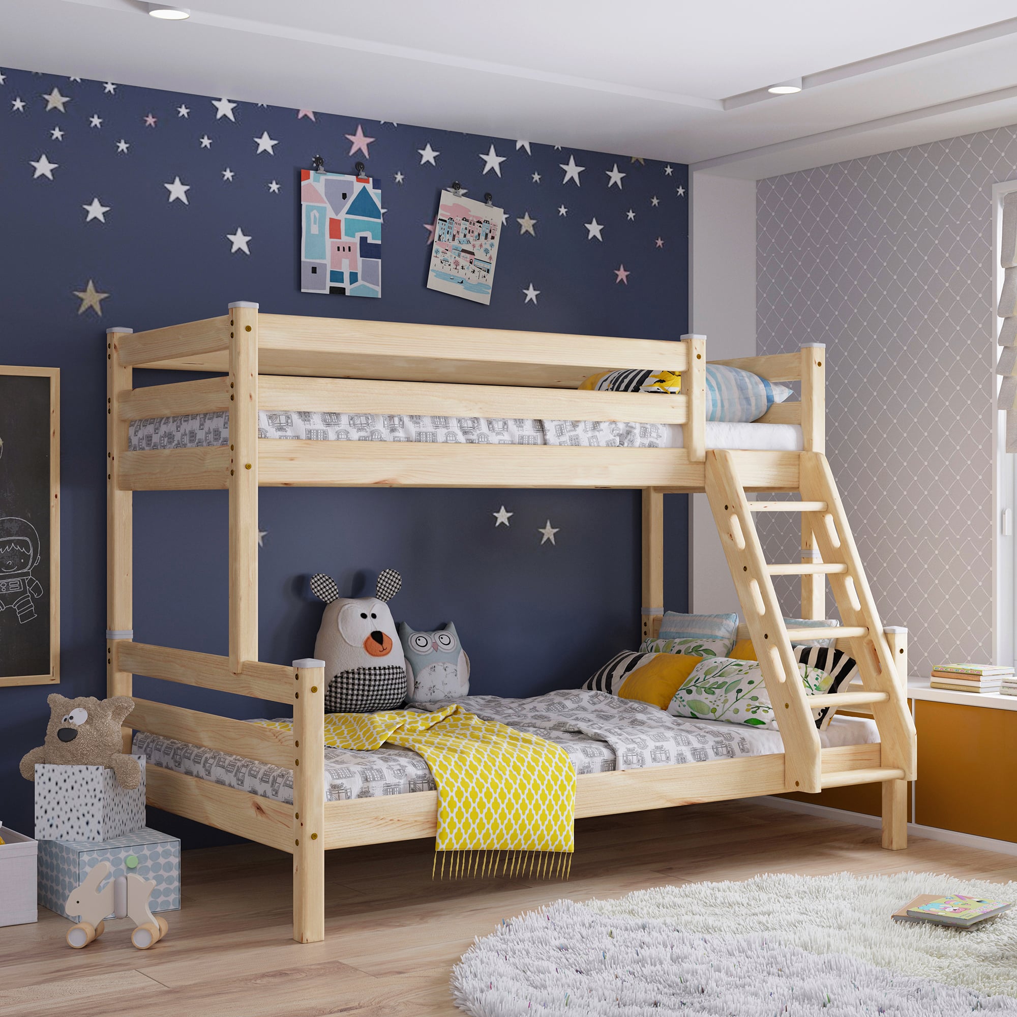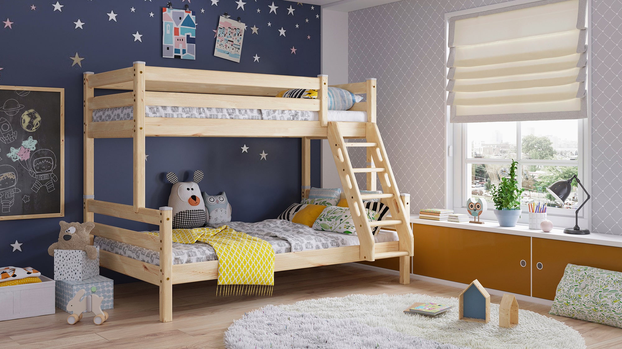 Продуманная конструкция и качественные материалы делают двухъярусную кровать Адель отличным выбором для двух детей, живущих в одной комнате. Модель оснащена бортиком безопасности и наклонной лестницей для легкого доступа к верхнему уровню.
