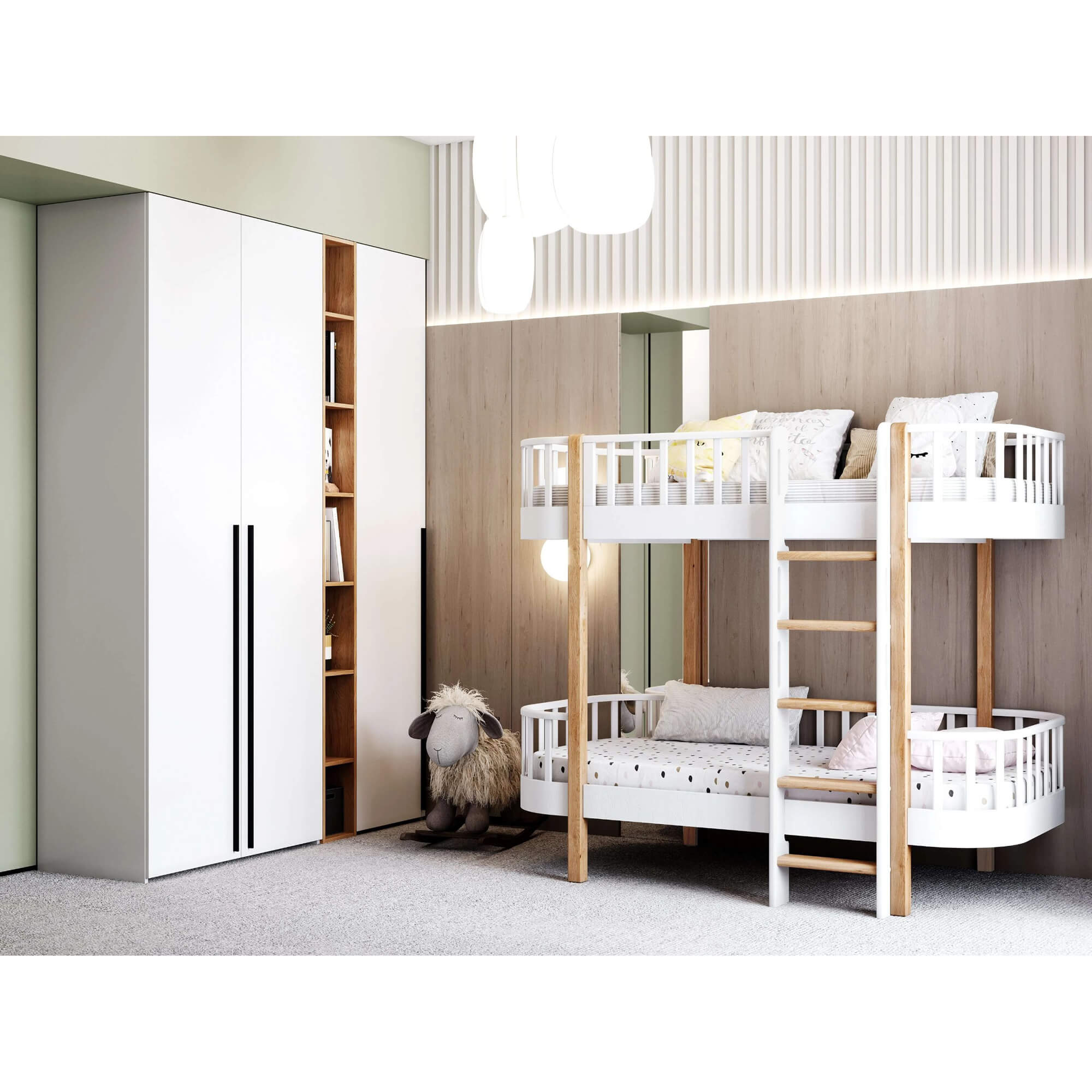 Двухъярусную кровать можно собрать только на правую сторону. Конструкция изделия не позволяет установить лестницу с левой стороны.