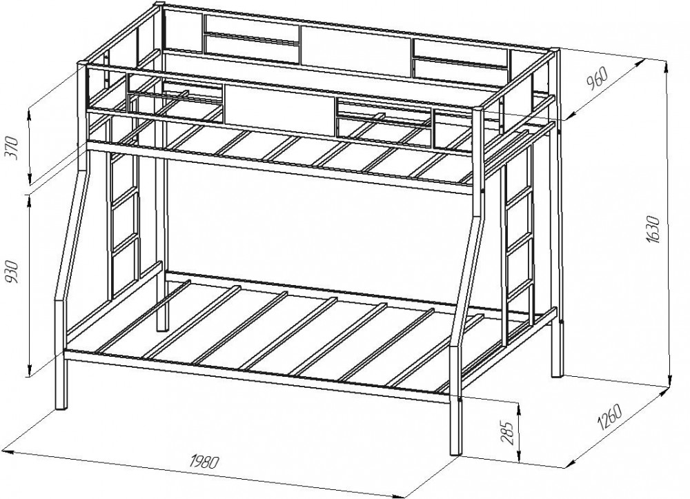 Спальное место: нижнее 1900х900 мм, верхнее 1900х1200 мм