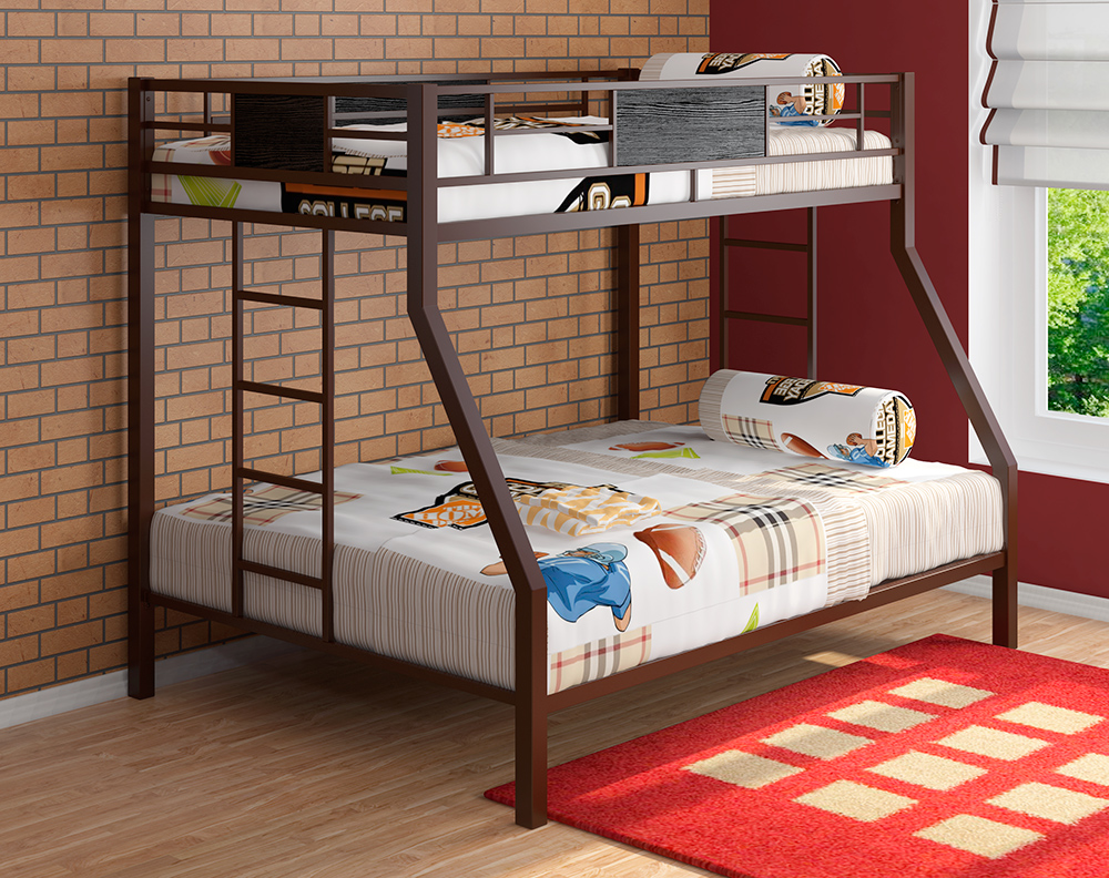 Металлическая двухъярусная кровать Гранада способна выдерживать нагрузку до 80 кг (на одно спальное место), что делает ее подходящей как для детей, так и для взрослых. Конструкция кровати предусматривает спальные места разных размеров. В отличие от кроватей из ЛДСП выглядит менее громоздкой. В комплект входят две лестницы по бокам кровати.