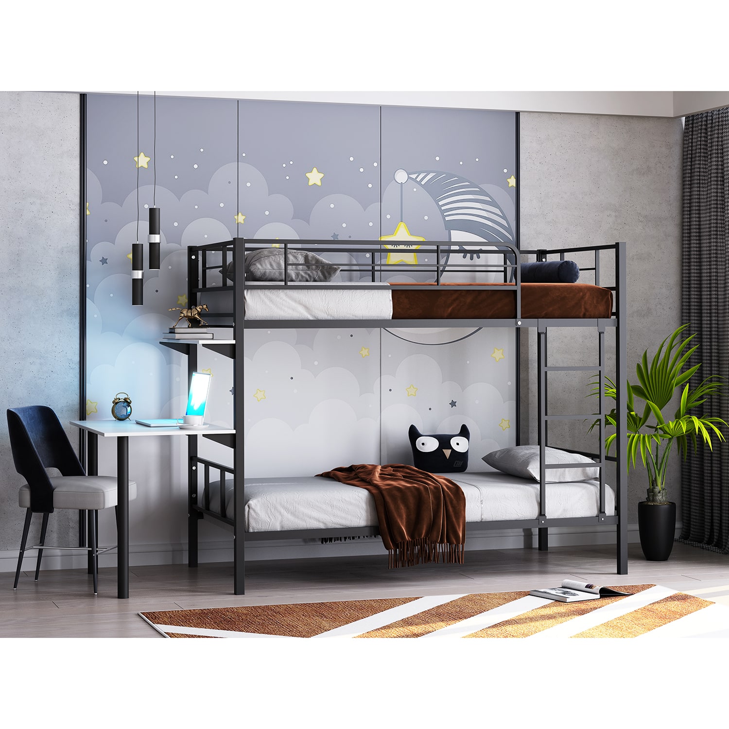 Все металлические элементы кровати покрыты износоустойчивой краской без запаха. Двухъярусную кровать можно собирать и разбирать неограниченное количество раз, и от этого она не потеряет в прочности и качестве.