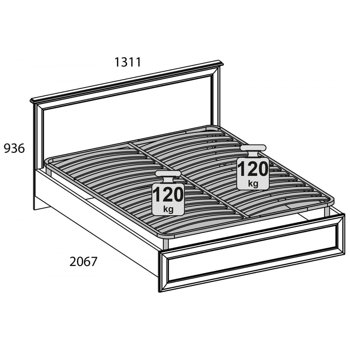 Кровать Тиффани 120 подойдёт для оформления зоны отдыха одного человека, но при необходимости возможно расположить ещё одну персону. Кровать 120 – полуторная, размер спального места – 1200*2000 мм (ширина - 1311 мм, глубина - 2079 мм). Конструкция кровати представлена сплошным изголовьем прямоугольной формы (с патинированными планками, декоративной короной) и изножьем прямоугольной формы (обрамлённое патинированными планками из МДФ), царгами и металлическим основанием на ножках.
