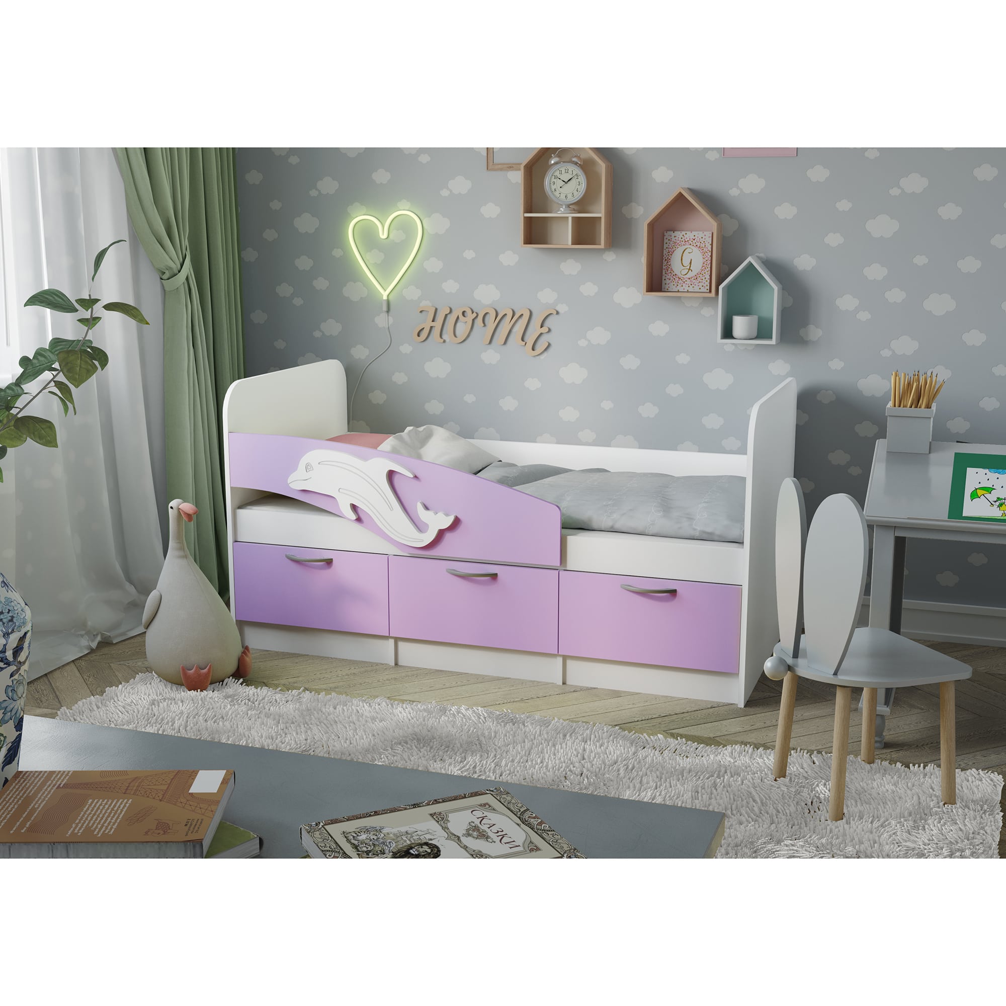 Кровать детская "Дельфин" - это отличное решение для обустройства комфортной и уютной зоны отдыха для вашего ребенка. Она имеет просторное спальное место, высокие боковины, спинку и безопасный скругленный защитный бортик, что обеспечивает безопасность и комфорт во время сна. Основание кровати оборудовано ящиками для хранения постельного белья, подушек и других вещей, что делает ее практичной и удобной в использовании.