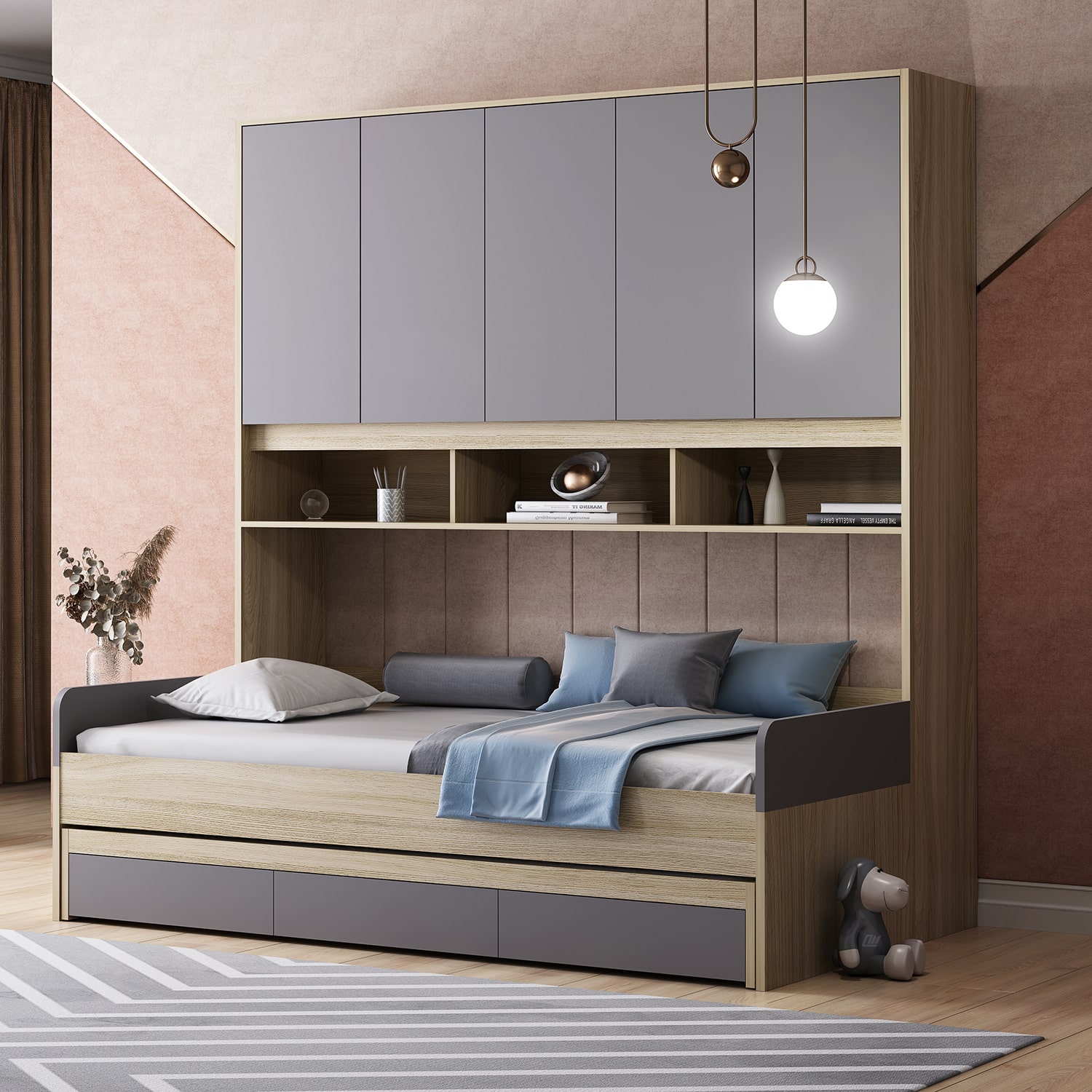 Кровать ДЕЛЬТА Next - это не только стильное решение для современного интерьера, но и вместительная система хранения! В модели предусмотрены ящики и выкатное спальное место для гостей.