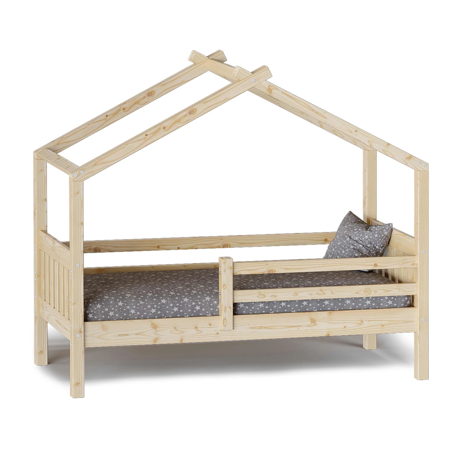 Каркас укомплектован основанием из поперечных гнутых ламелей. Головная и ножная спинки соединены стропилами, образующими крышу, благодаря чему малыш будет ощущать себя в собственном уютном домике. В комплектацию кровати входит ортопедическое основание из гнутоклееных ламелей.