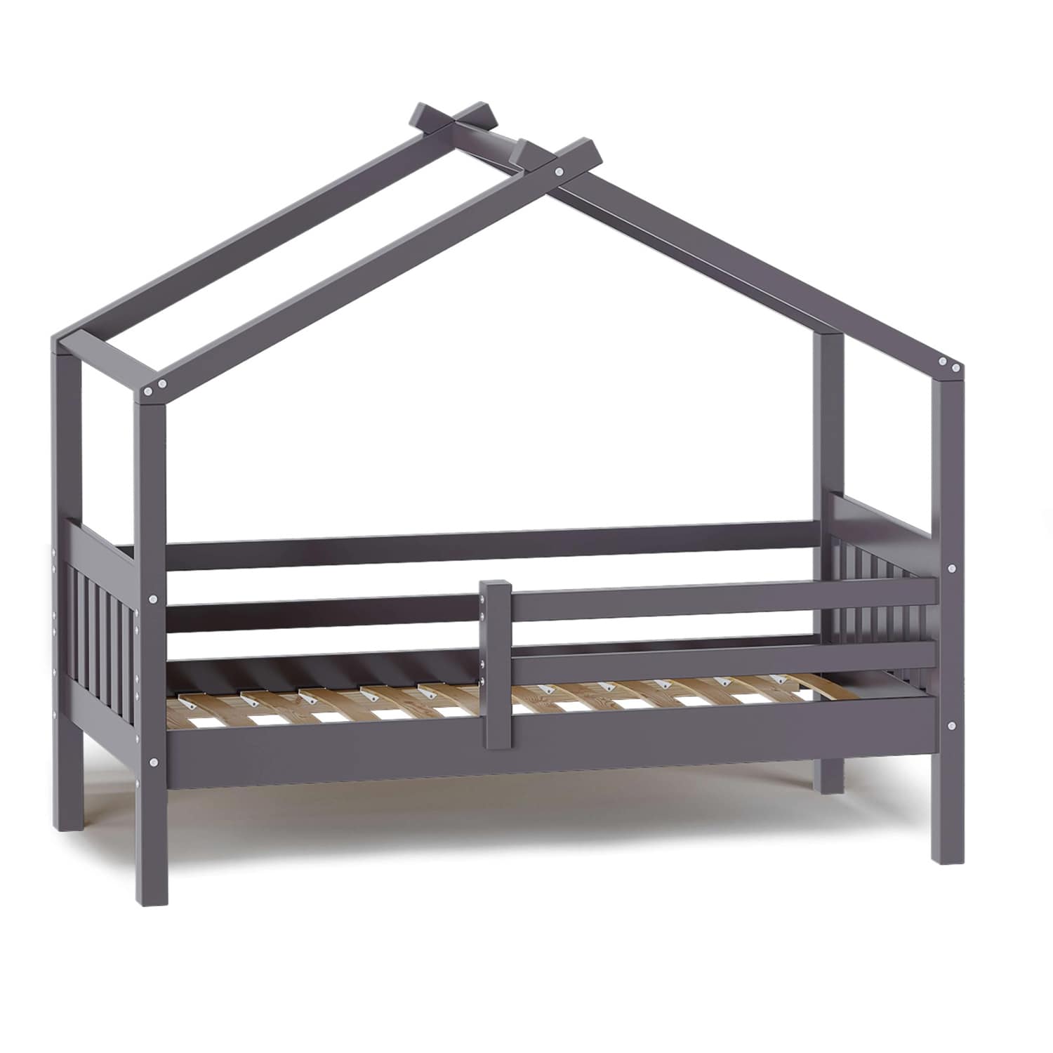 Каркас укомплектован основанием из поперечных гнутых ламелей. Головная и ножная спинки соединены стропилами, образующими крышу, благодаря чему малыш будет ощущать себя в собственном уютном домике. В комплектацию кровати входит ортопедическое основание из гнутоклееных ламелей.