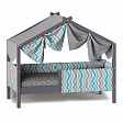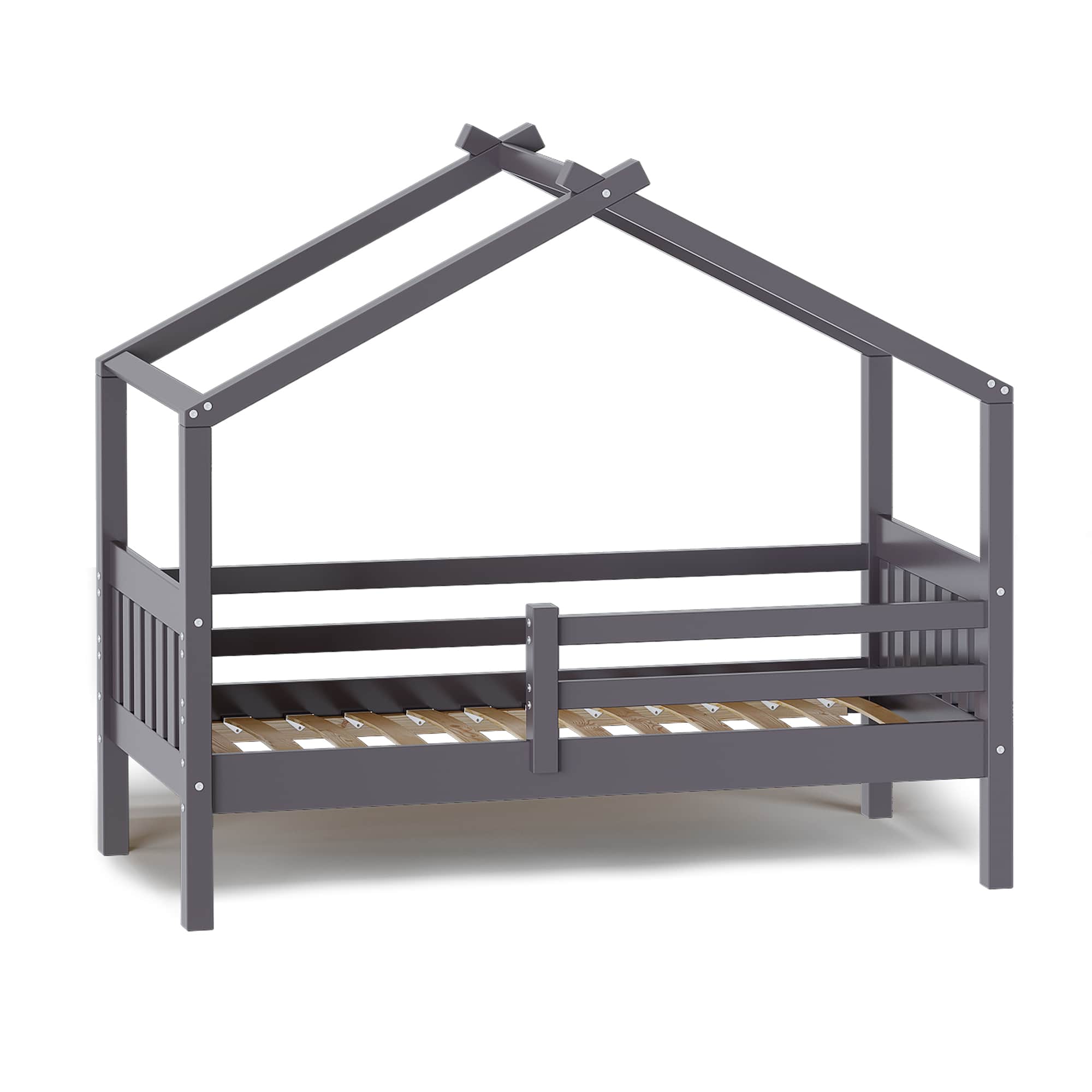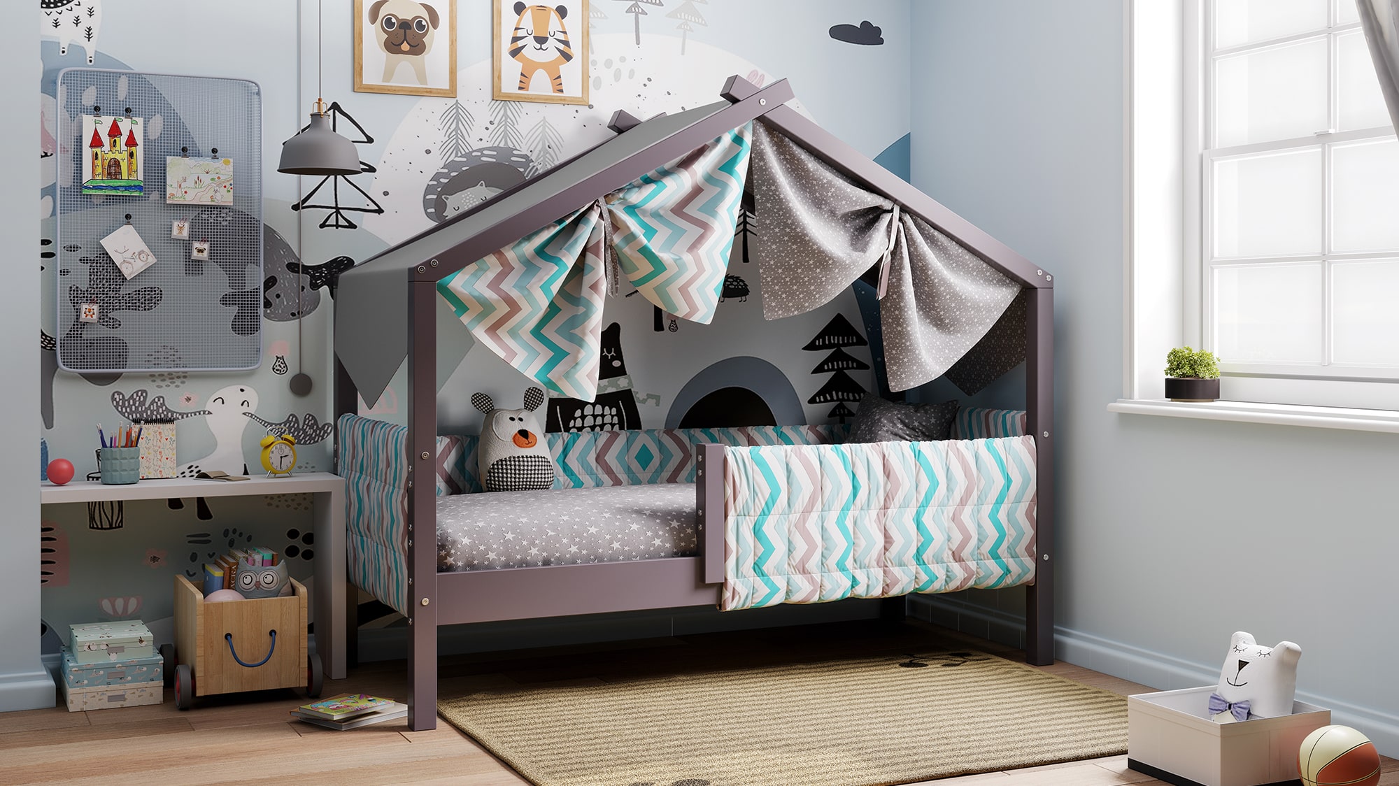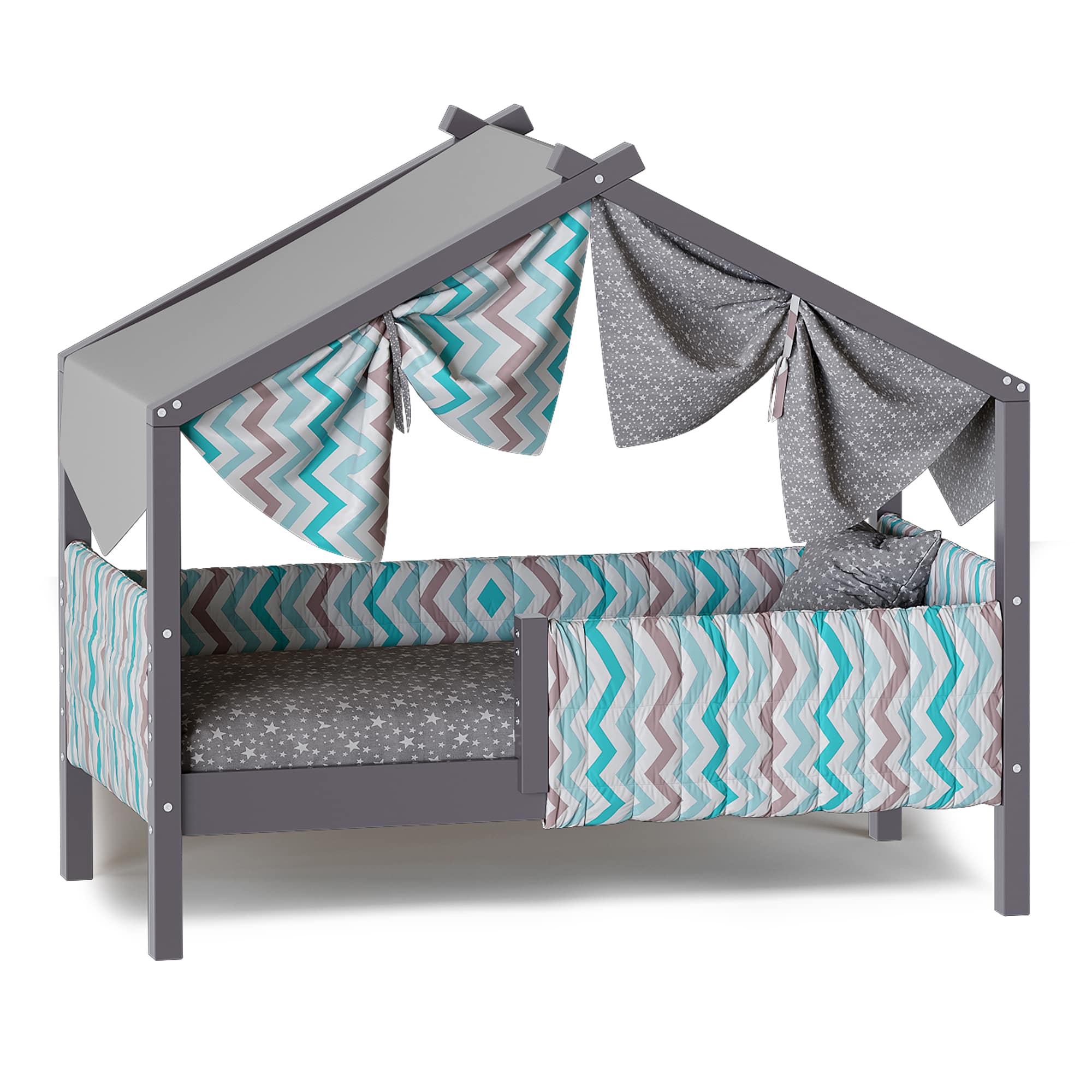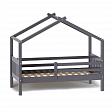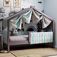 Каркас укомплектован основанием из поперечных гнутых ламелей. Головная и ножная спинки соединены стропилами, образующими крышу: если дополнить кроватку текстильными аксессуарами в виде балдахина и мягких бортиков, малыш будет ощущать себя в собственном уютном домике. В комплектацию кровати входит ортопедическое основание из гнутоклееных ламелей.