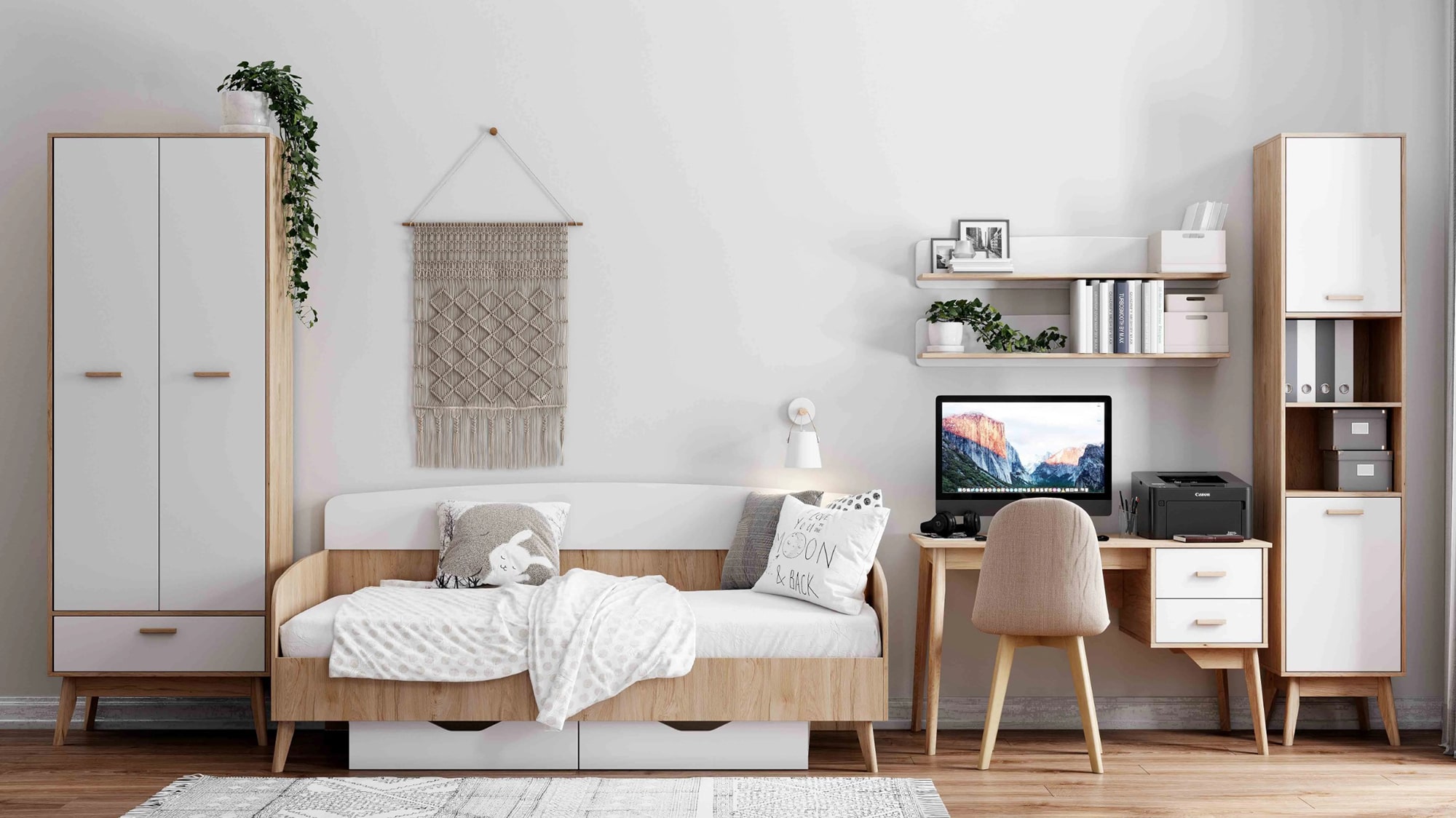 Кровать "Калгари" - идеальный выбор для небольшой спальни или детской комнаты. Она выполнена из качественных материалов и имеет стильный дизайн, со спинкой и сгругленными углами.