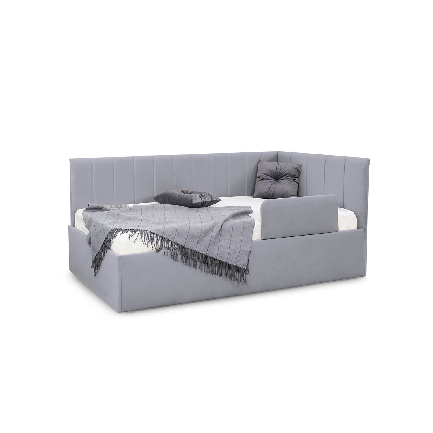 Кровать “Хеппи” - это идеальное решение для детской комнаты. Мягкая обивка из приятного на ощупь, гипоаллергенного велюра обеспечивает комфорт и уют во время сна.