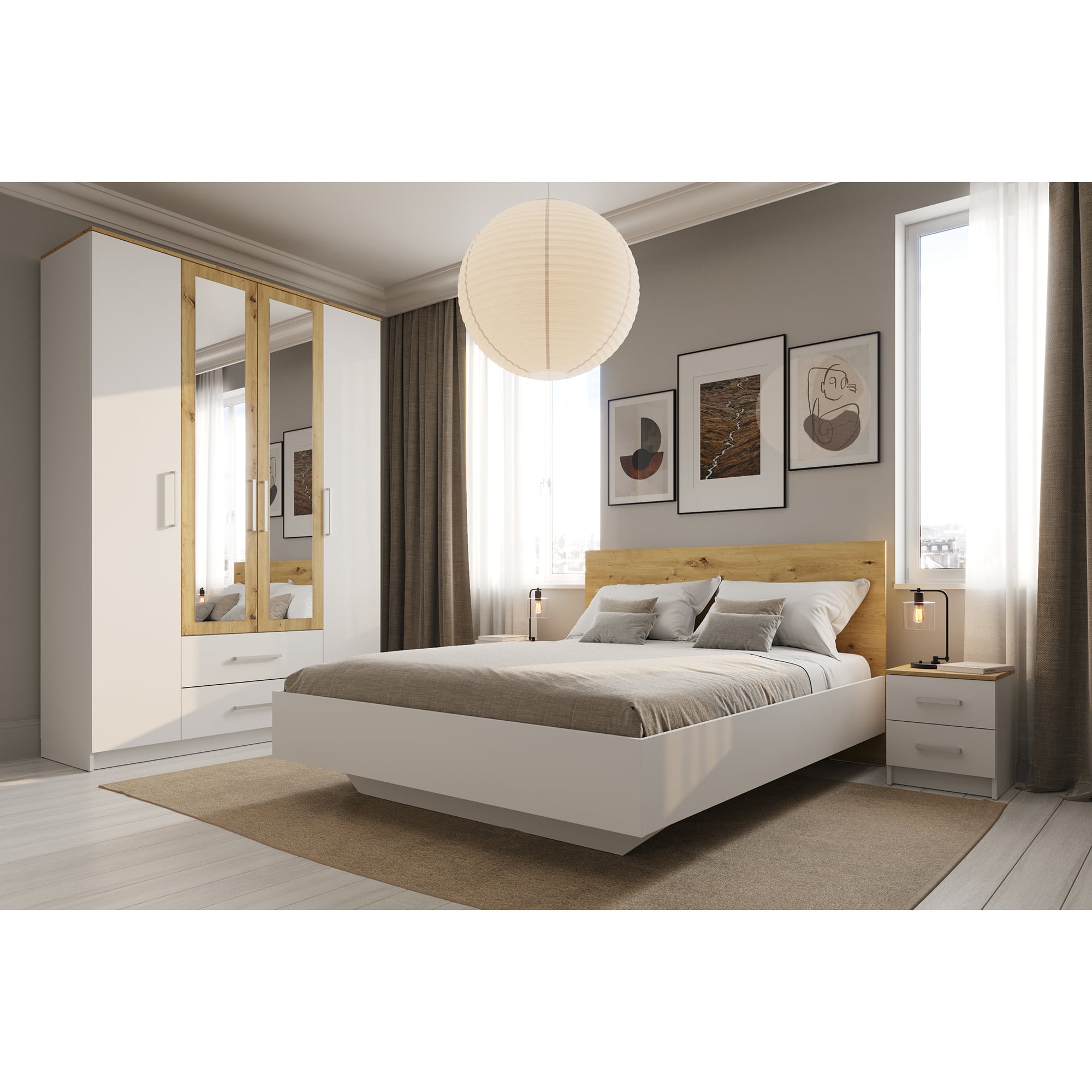 Кровать НК Бланка 1600 Белый/дуб Артизан с эффектом парящей кровати. - это воплощение современного комфорта и элегантности в вашей спальне. Элегантное сочетание белоснежного корпуса с теплым оттенком натурального дуба Артизан создает изысканный контраст, который гармонично впишется как в классический, так и в современный интерьер.