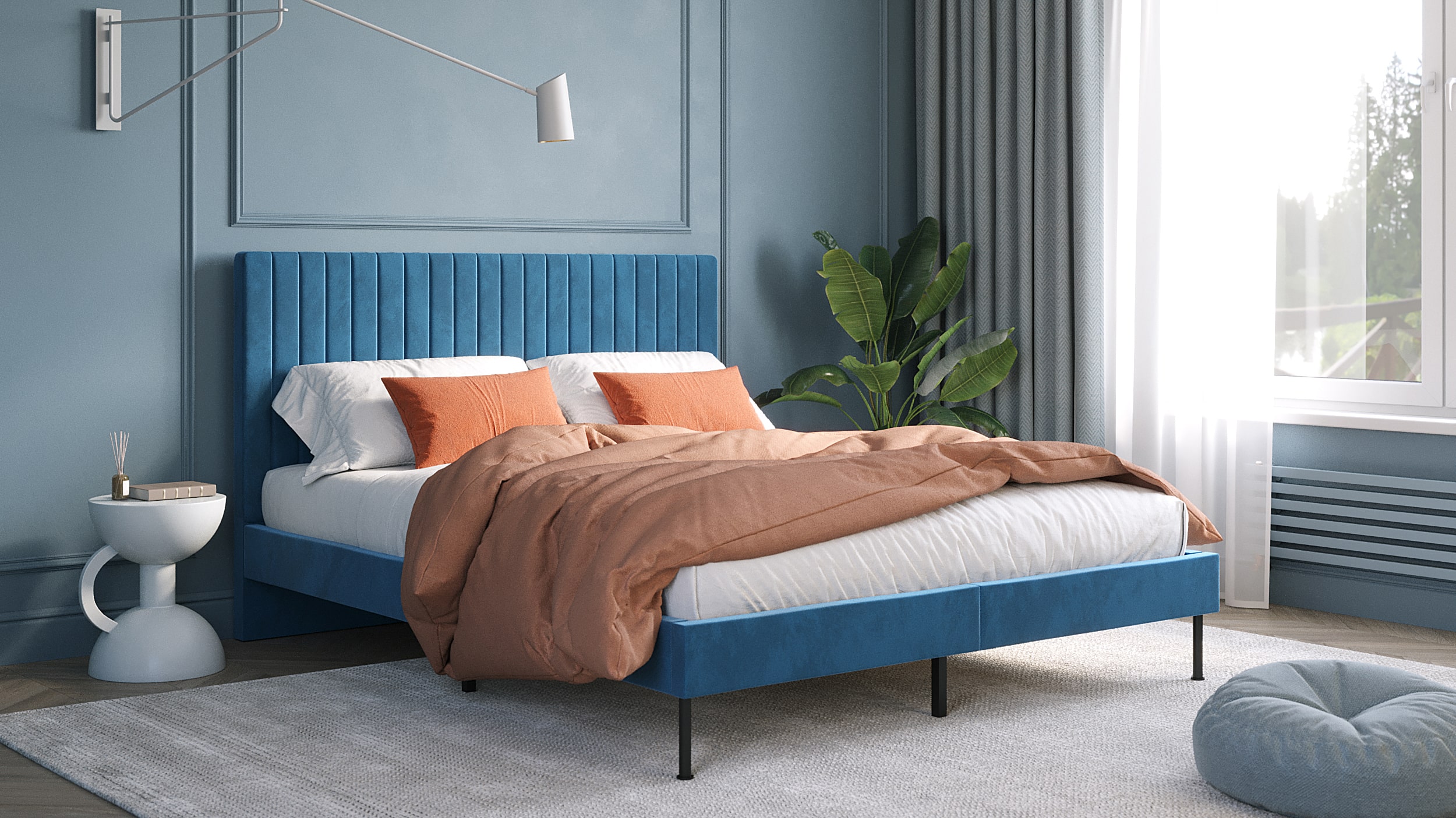 Кровать NOVEL — идет в комплекте с реечным основанием под матрас, основание уже включено в стоимость! Металлический каркас основания надежно соединяет сборную конструкцию кровати.