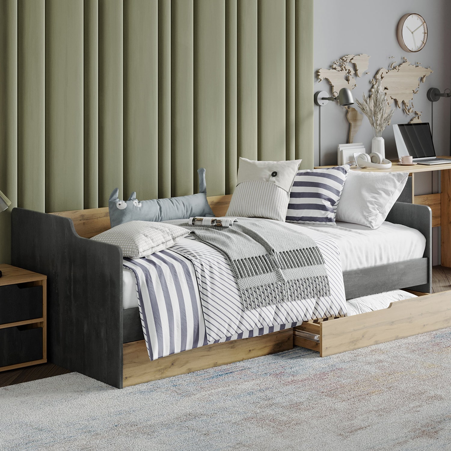 Кровать односпальная Харви 2Я Дуб вотан/обсидиан