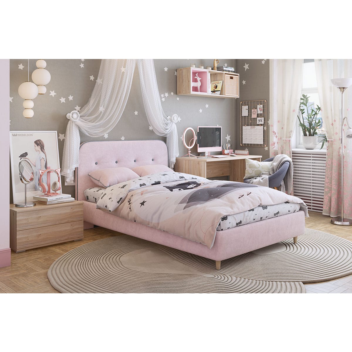 Кровать односпальная Лео 120х200 нежно-розовый/графит (велюр)