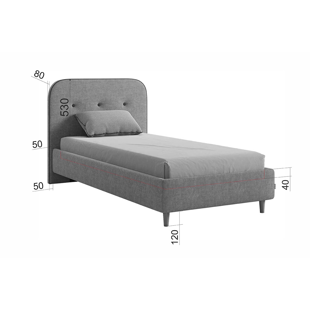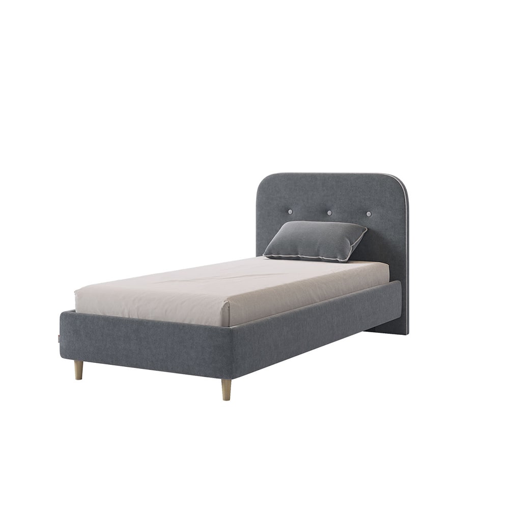 Кровать односпальная Лео 90х200 графит/галька (велюр)
