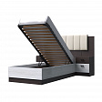 В комплект входит: кровать с подъемным механизмом, мягкая накладка, две тумбы.