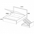 Конструкция кровати представляет собой сплошное изголовье прямоугольной формы и изножье прямоугольной формы, царги и металлическое основание с подъёмным механизмом, большой вместительные короб для хранения вещей, белья и предметов быта. Деревянные ламели служат дополнительной амортизирующей основой.
