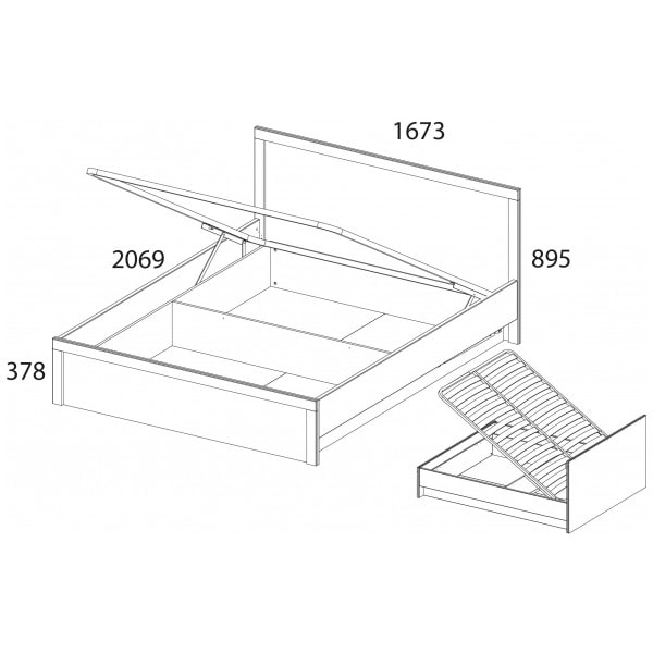 Кровать 160 JAZZ с подъёмным механизмом – двуспальная, размер спального места – 1600*2000 мм. Конструкция кровати представляет собой сплошное изголовье прямоугольной формы и изножье прямоугольной формы, царги и металлическое основание с подъёмным механизмом, большой вместительные короб для хранения вещей, белья и предметов быта. Деревянные ламели служат дополнительной амортизирующей основой.