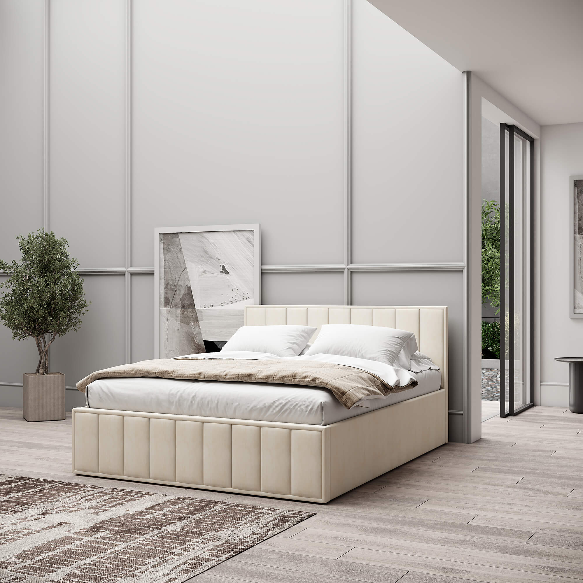 Ортопедическое основание. В комплектацию каждой кровати входит ортопедическое основание с подъемным механизмом, благодаря которому всегда доступны дополнительные зоны хранения.