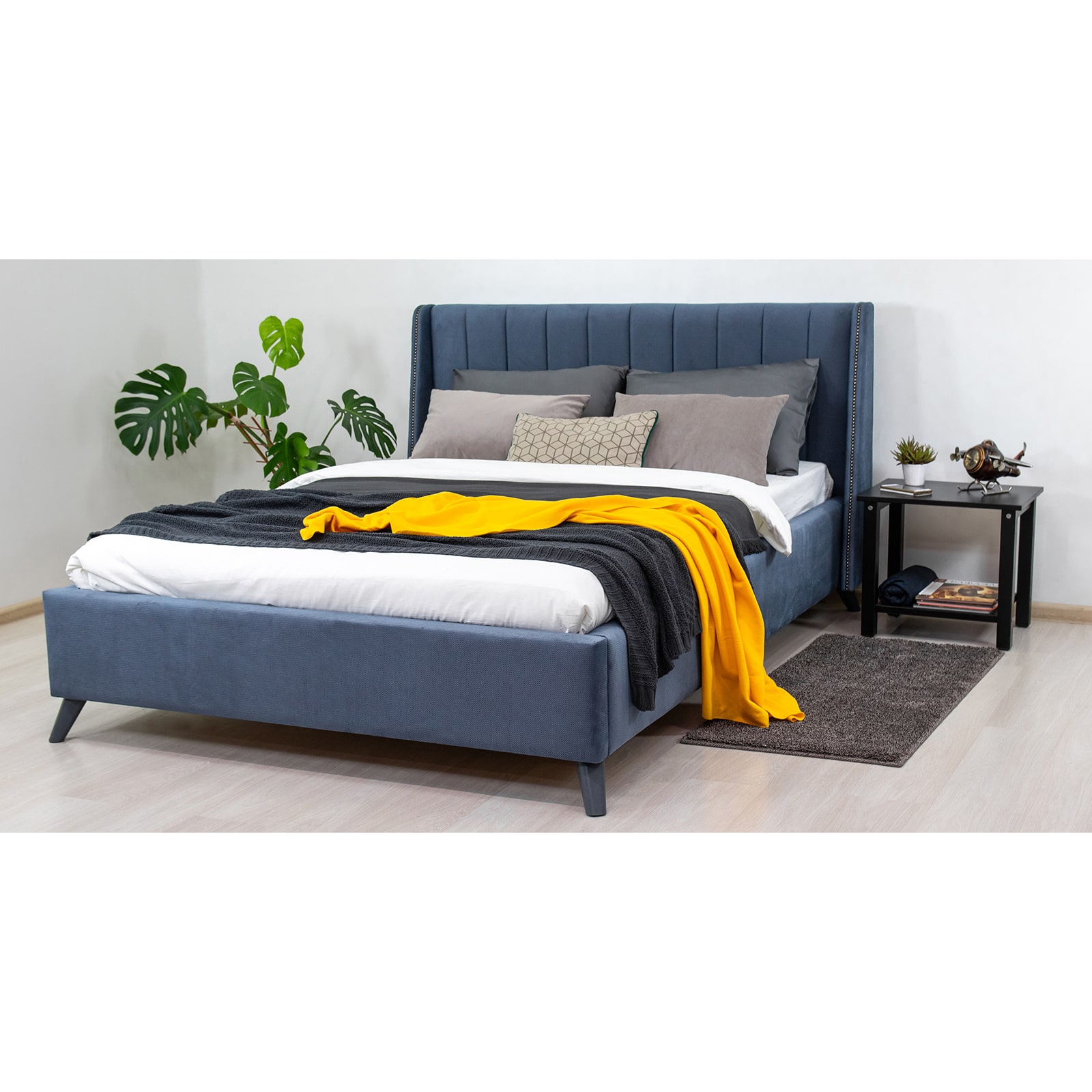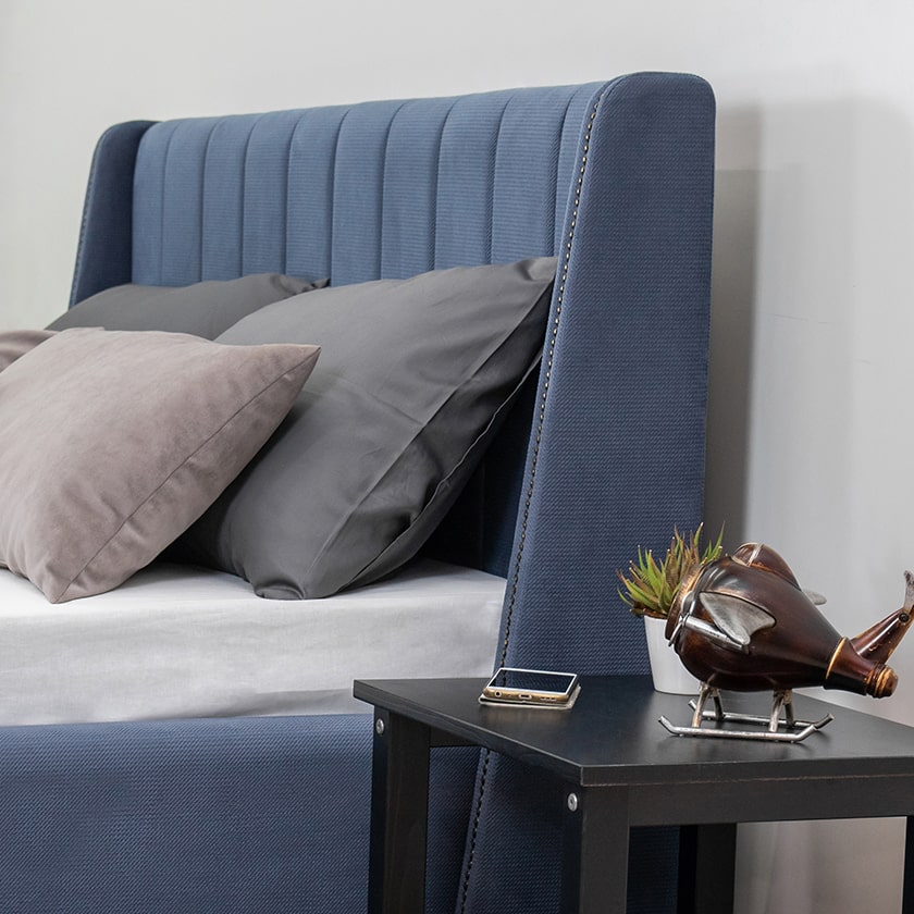 Хороший дизайн, ничего лишнего. У меня спальня в стиле минимализм, в которой преобладают синие тона, поэтому такая кровать стала настоящей находкой. Очень уютная, приятная на ощупь ткань обивки. Рекомендую к покупке