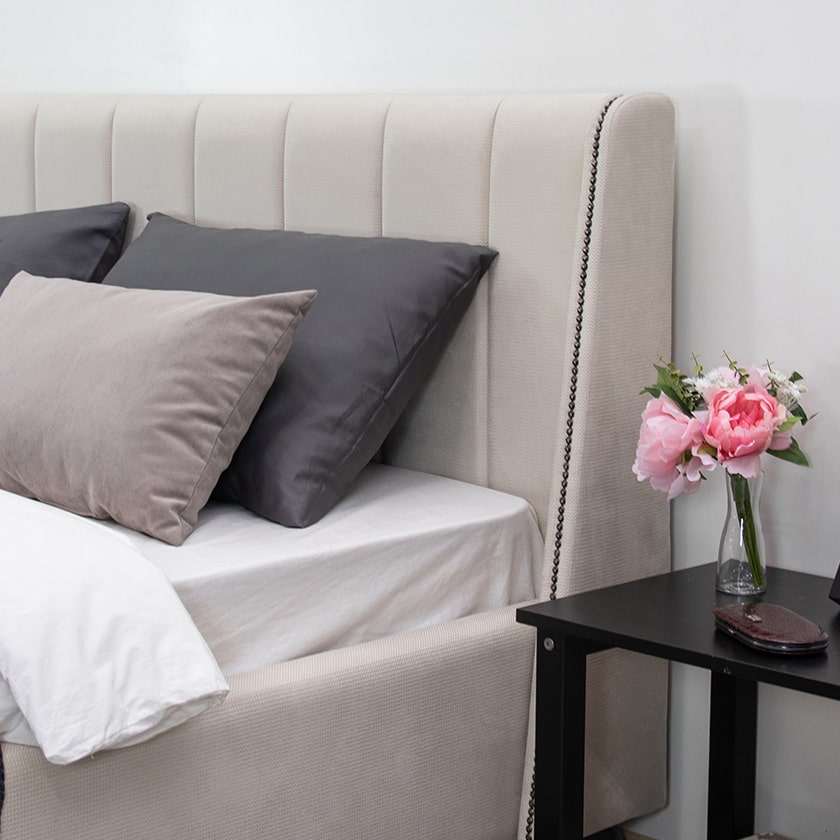 Актуальный дизайн интерьерной кровати МЕЛИССА – для истинных ценителей трендовых тенденций в мебельном дизайне. Изголовье кровати с боковыми накладками, декорированными мебельным молдингом-гвоздиками, создает атмосферу приватности, защищенности и комфорта.