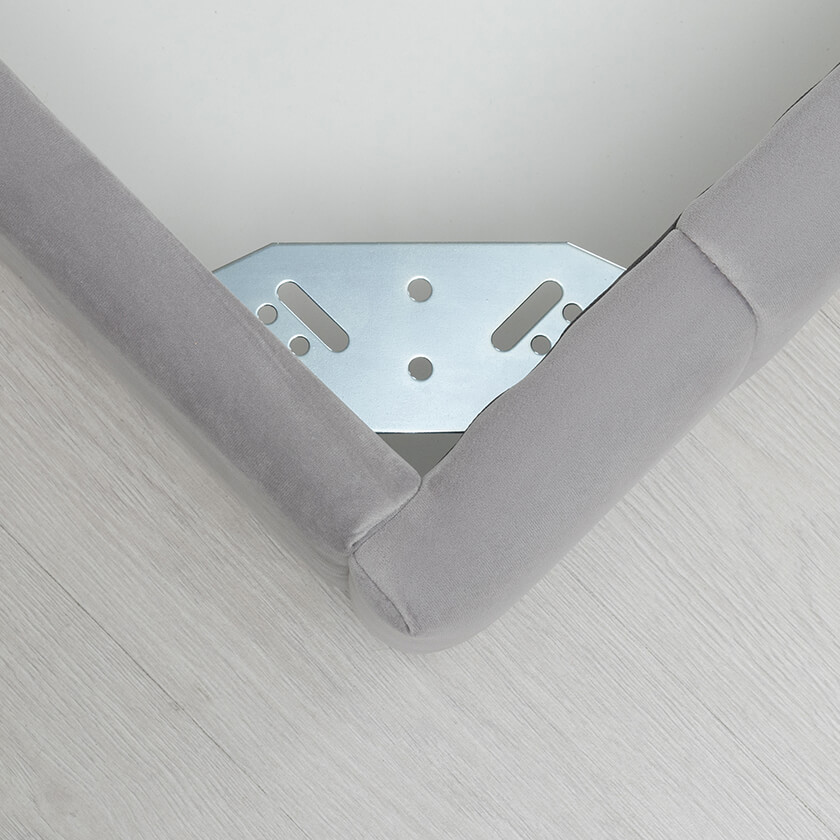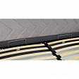 Основание кровати укомплектовано матрасодержателями. Жесткое кроватное дно из ЛДСП 16 мм. Задняя стенка изголовья выполнена в тех. ткани (спанбонд).