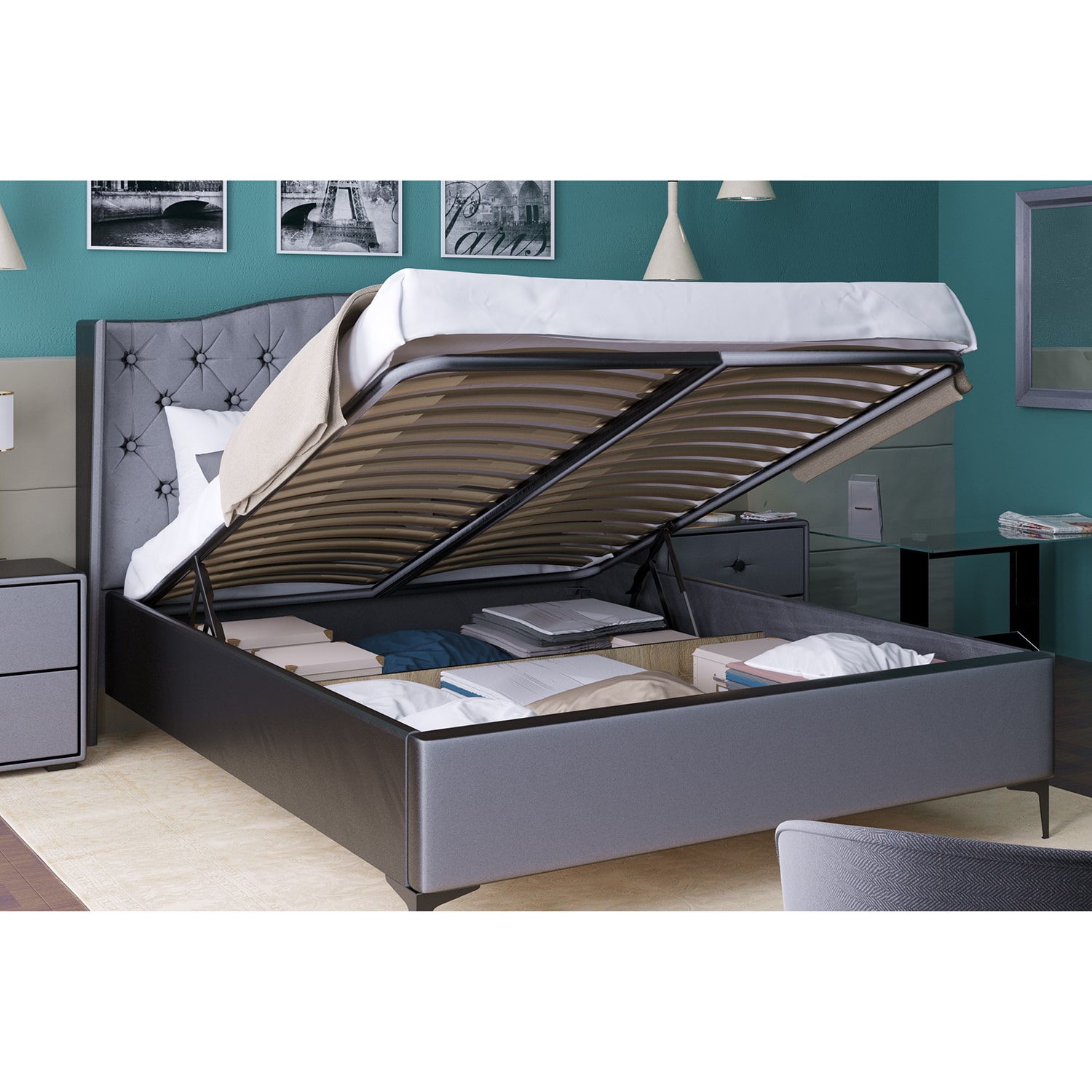 Комплектуется кроватным основанием с механизмом подъема 1600*2000.