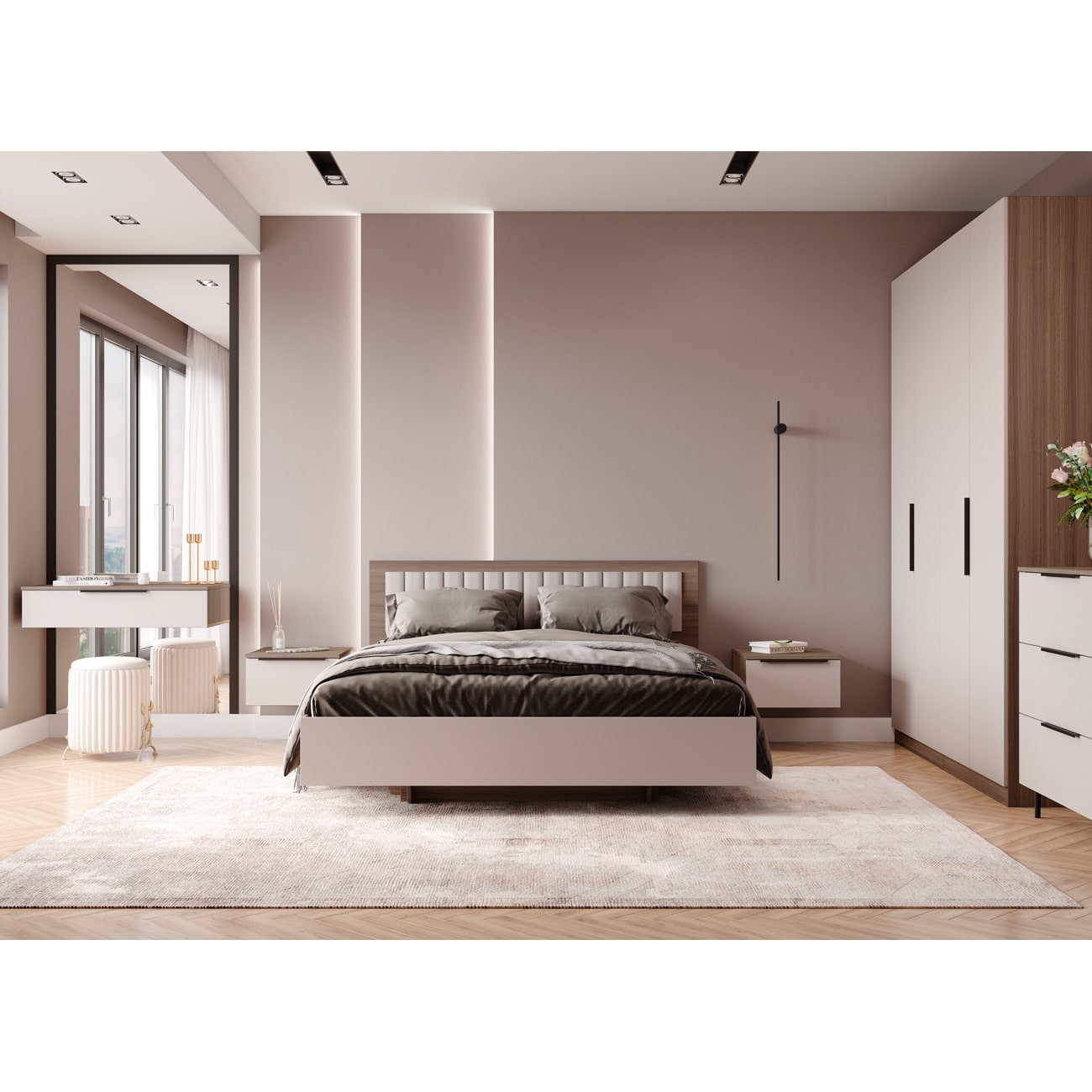 Изголовье кровати выполнено из расширенной ЛДСП плиты толщиной 32 мм. с МДФ вставкой, которая придает ей элегантный внешний вид.