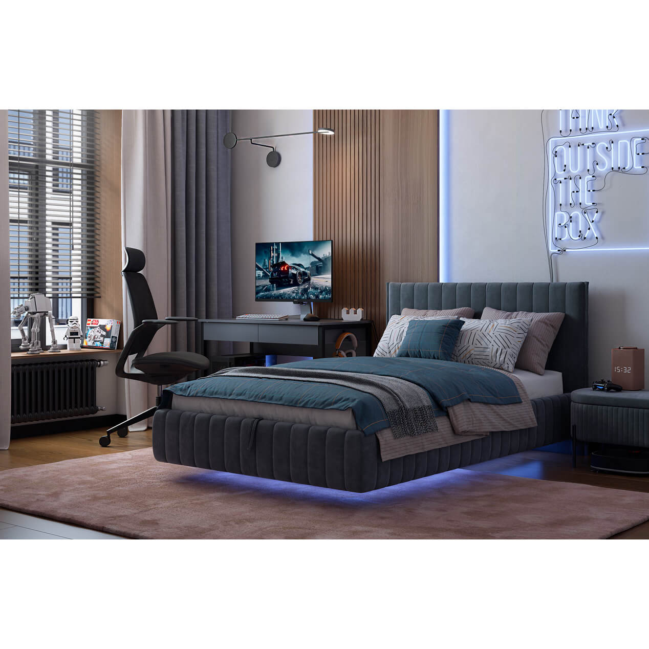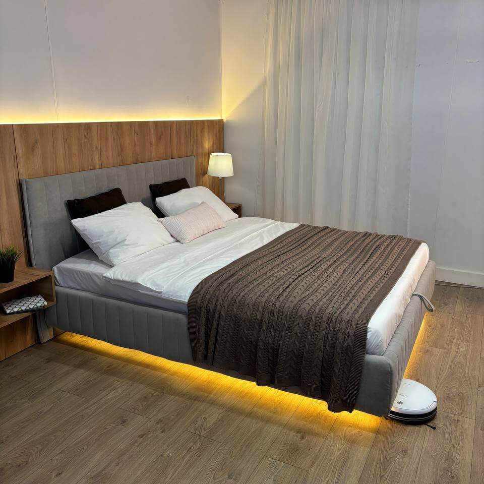Подсветка для кровати приобретается отдельно..