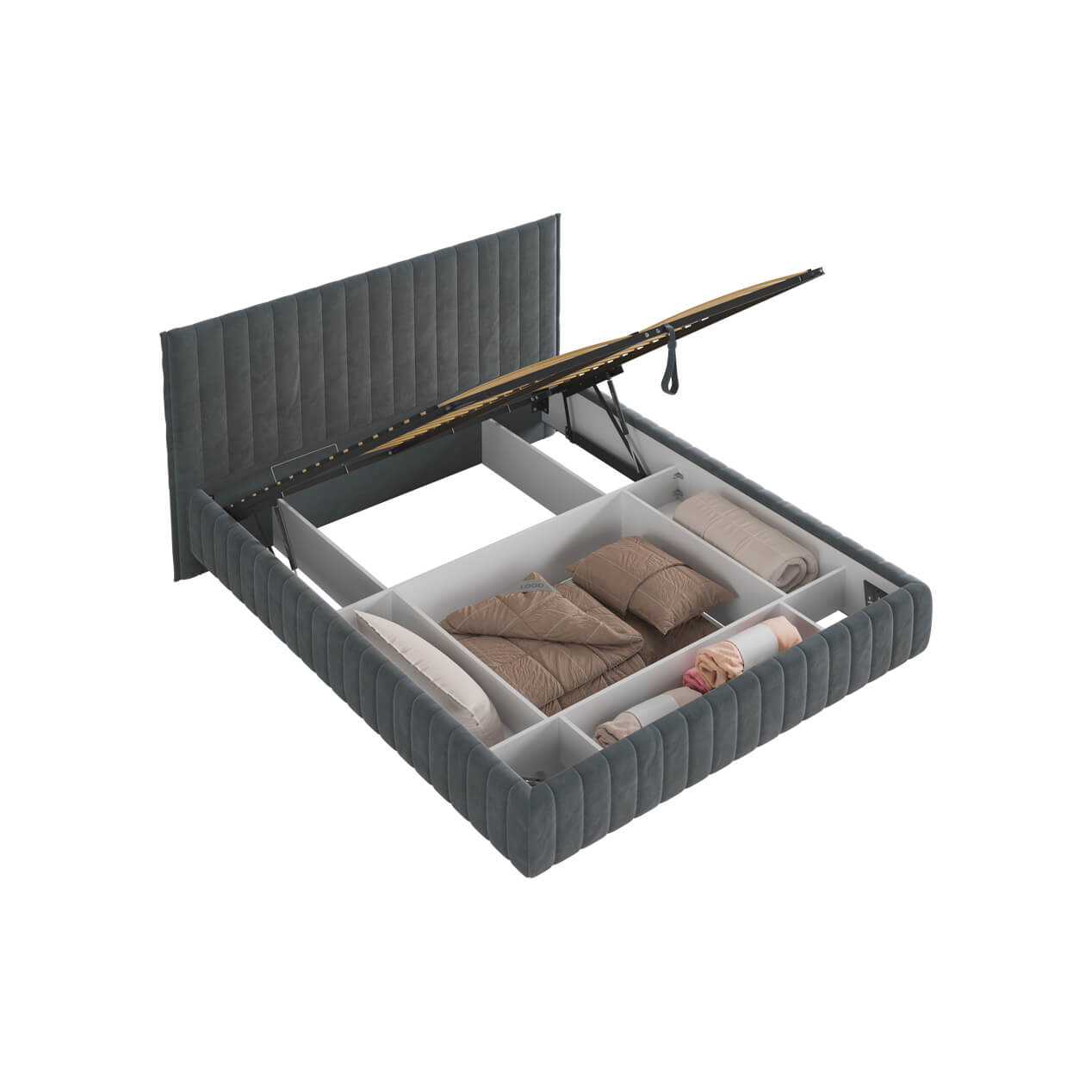 Подъемное основание сделает ваш сон здоровым и крепким, а также благодаря ему под кроватью будет располагаться ящик для хранения вещей, которые будут всегда под рукой.