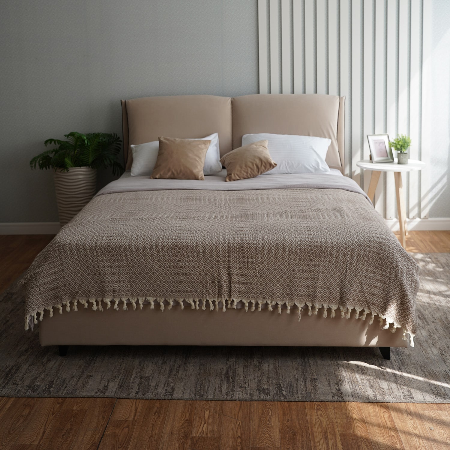 Кровать доступна в трех модных цветах и выполнена из высококачественной рогожки с антивандальными свойствами, что обеспечивает долговечность и надежность. Внутренняя обивка из спандбонда делает мебель устойчива к износу, не впитывает влагу, гарантируя долгий срок службы.