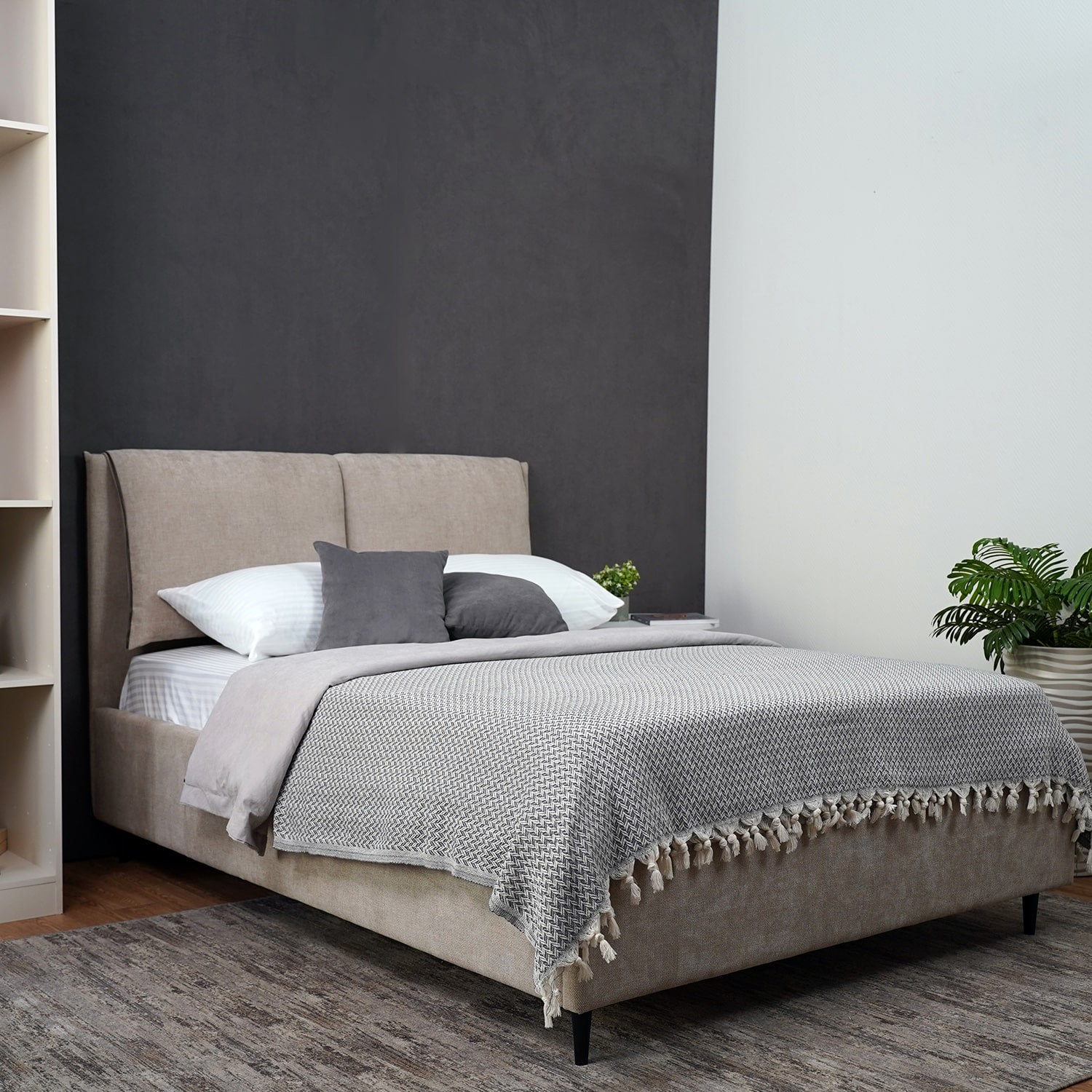 Кровать доступна в трех модных цветах и выполнена из высококачественной рогожки с антивандальными свойствами, что обеспечивает долговечность и надежность. Внутренняя обивка из спандбонда делает мебель устойчива к износу, не впитывает влагу, гарантируя долгий срок службы.