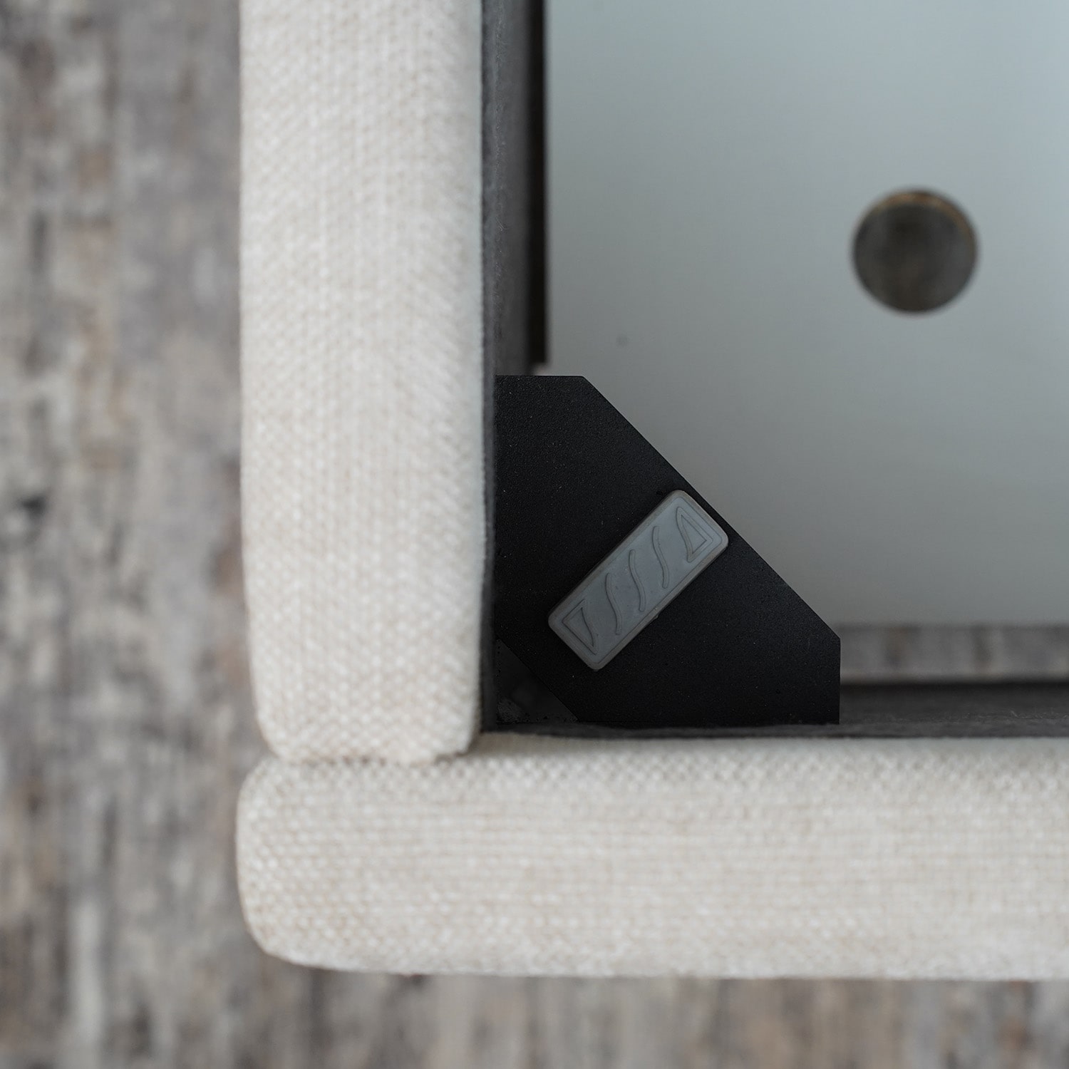 Встроенные карманы в боковины кровати и изящное изголовье создают дополнительный комфорт и практичность, позволяя хранить под рукой все необходимое современному человеку. Элегантное изголовье в сочетании с четкими линиями каркаса придают мебели современный и минималистичный вид.