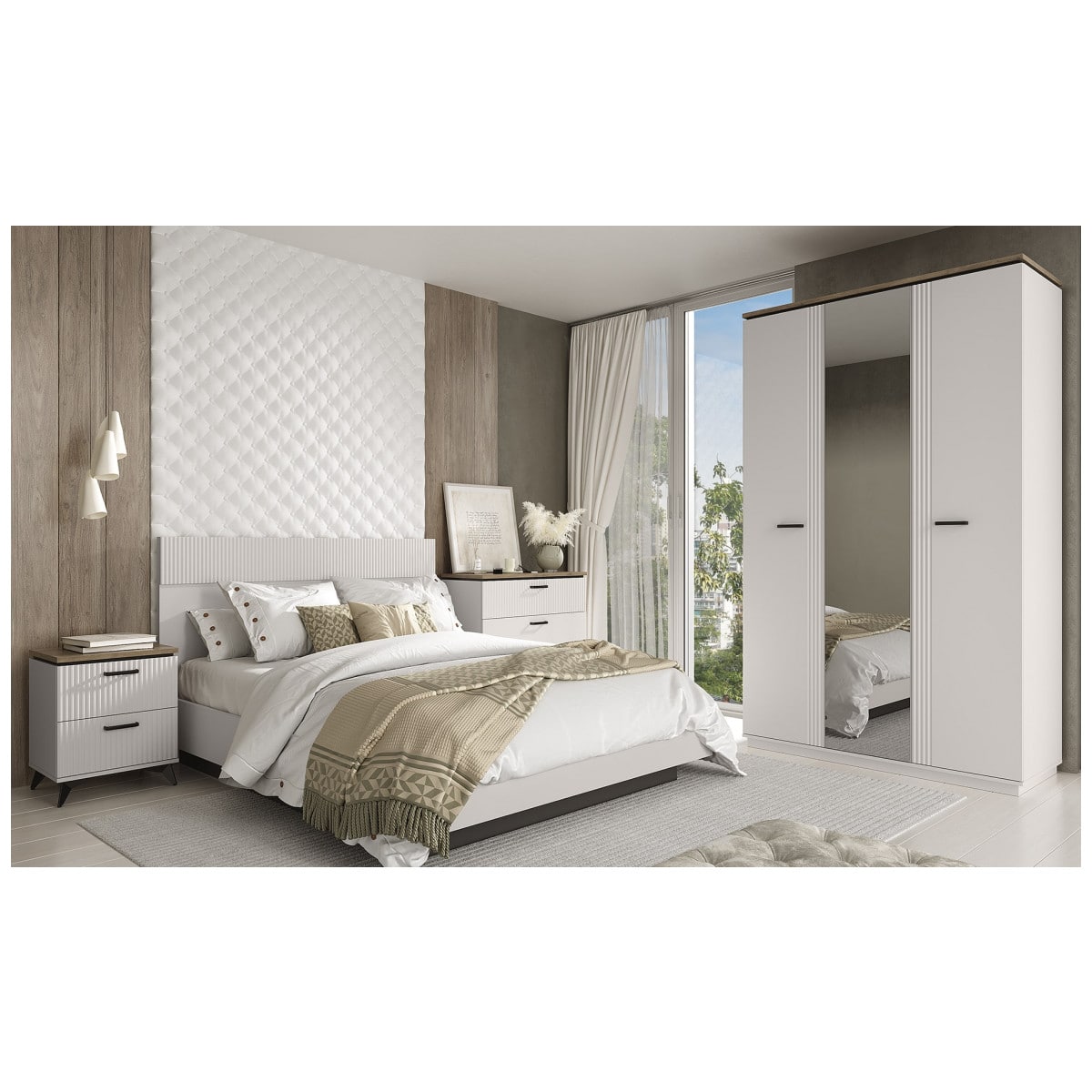 Декор в виде рифленой поверхности на фасаде подчеркивает особенность дизайна коллекции. Добавьте сюда подсветку, украсьте памятными сувенирами, семейными фотографиями и Ваш интерьер засияет поистине новыми красками.