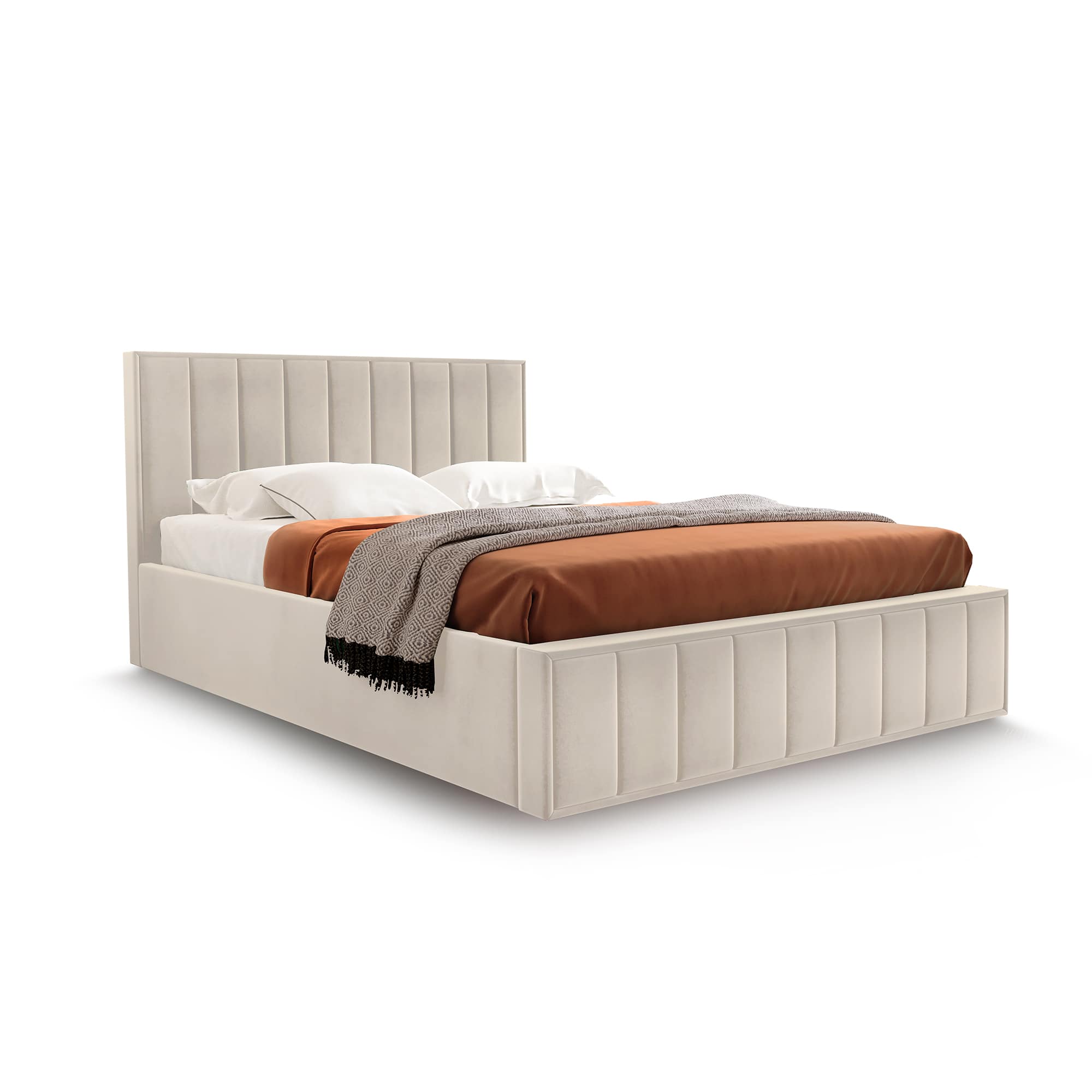 Кровать в мягкой обивке “Женева” является воплощением элегантной изысканности.